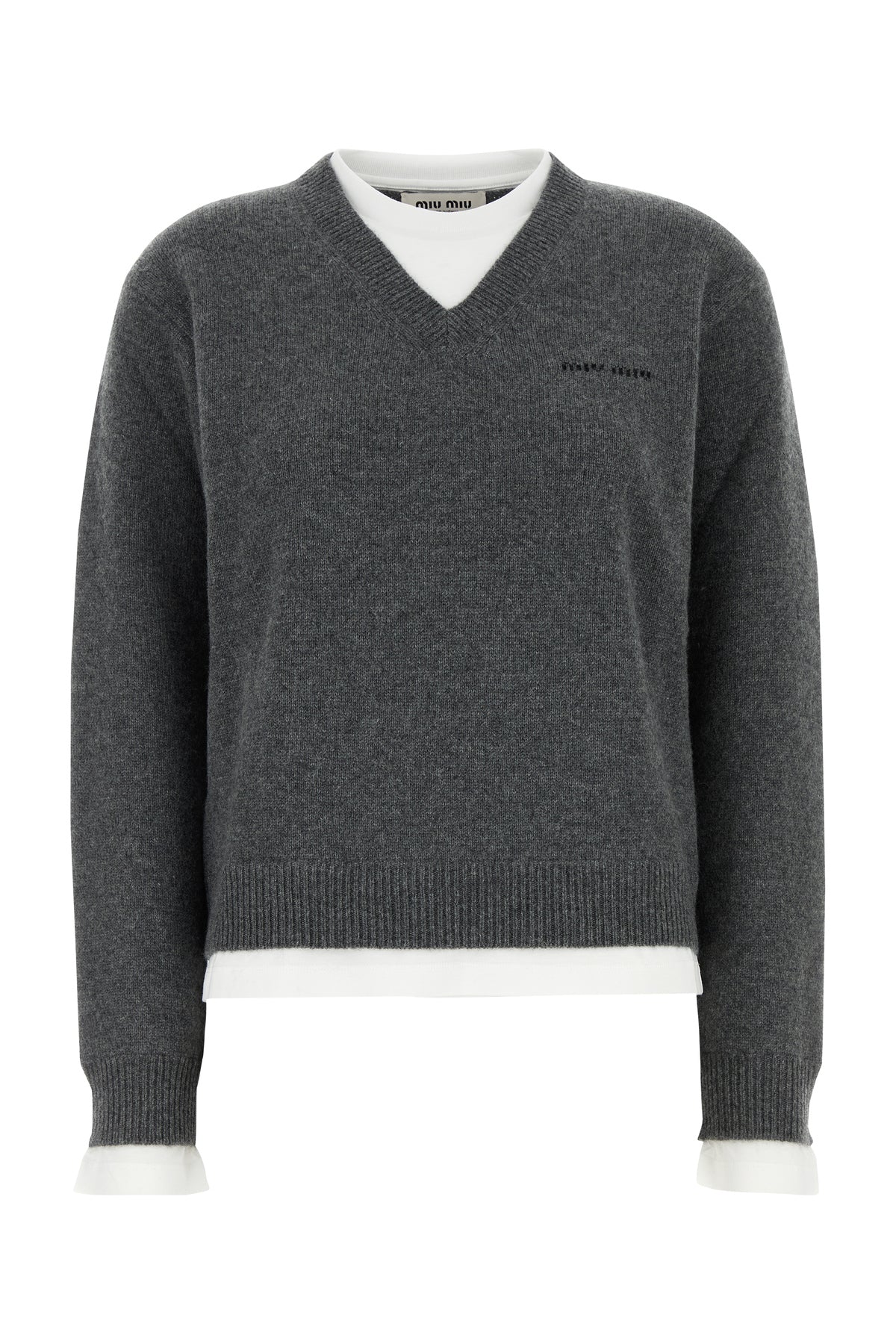 Layered sweater realized in pure cashmere characterized by contrasting embroidered logo on the chest.