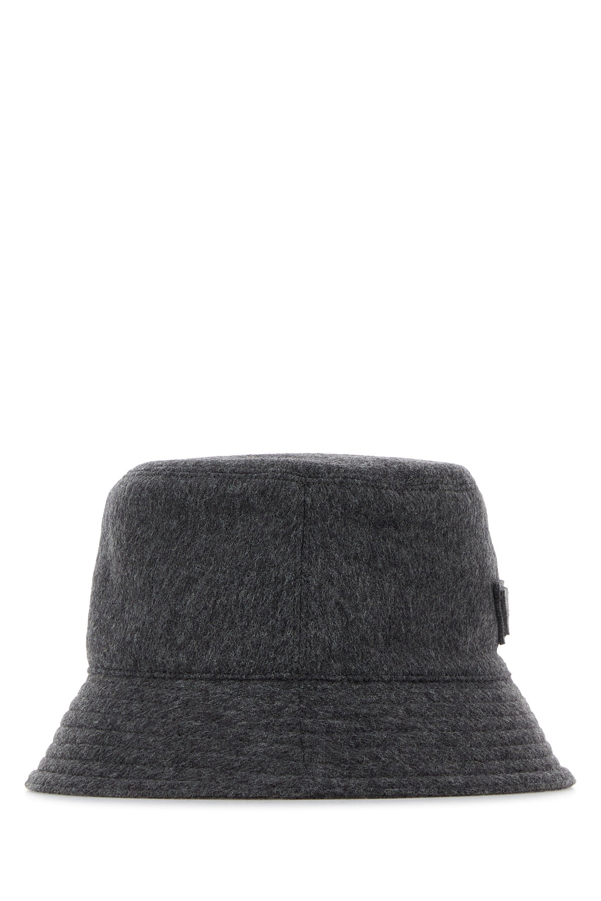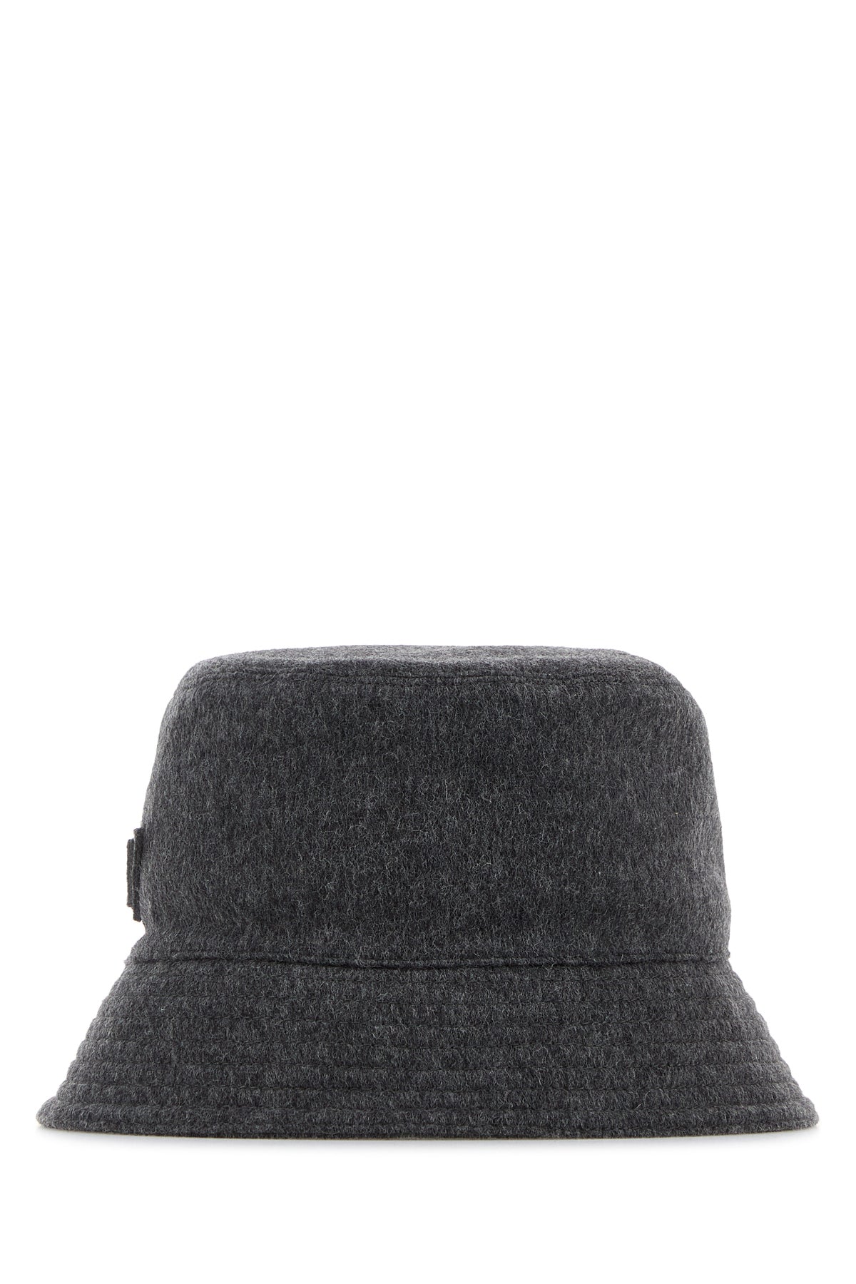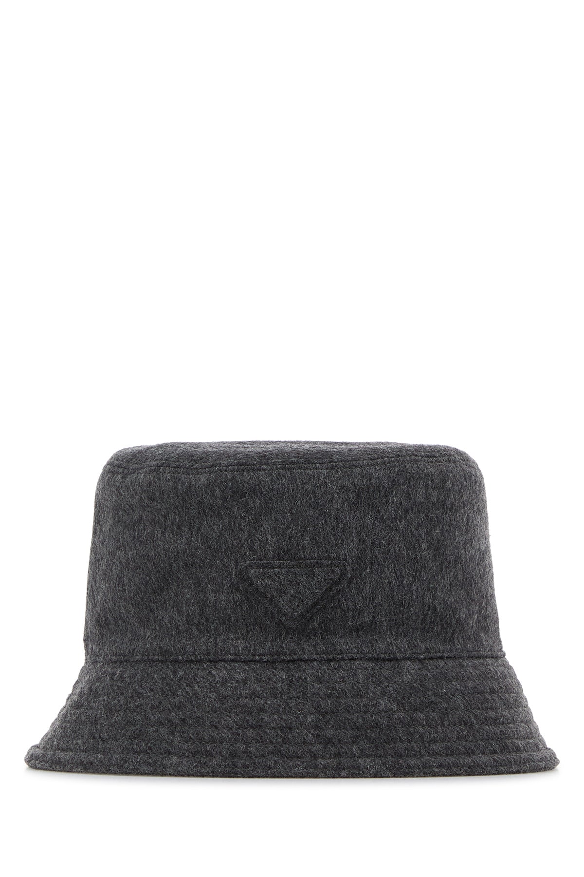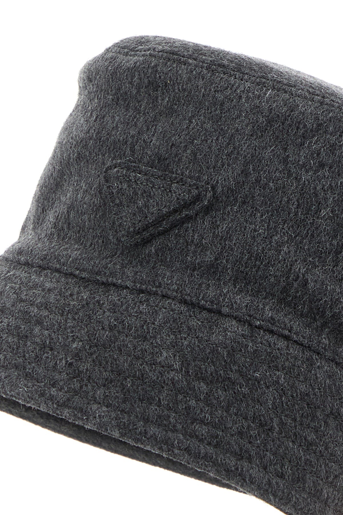 Bucket hat realized in pure virgin wool felt enriched by tonal fabric iconic triangle on the side.