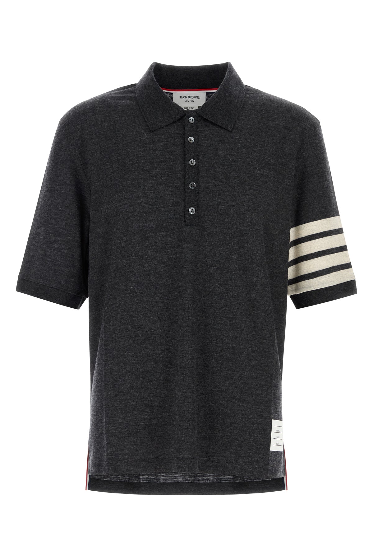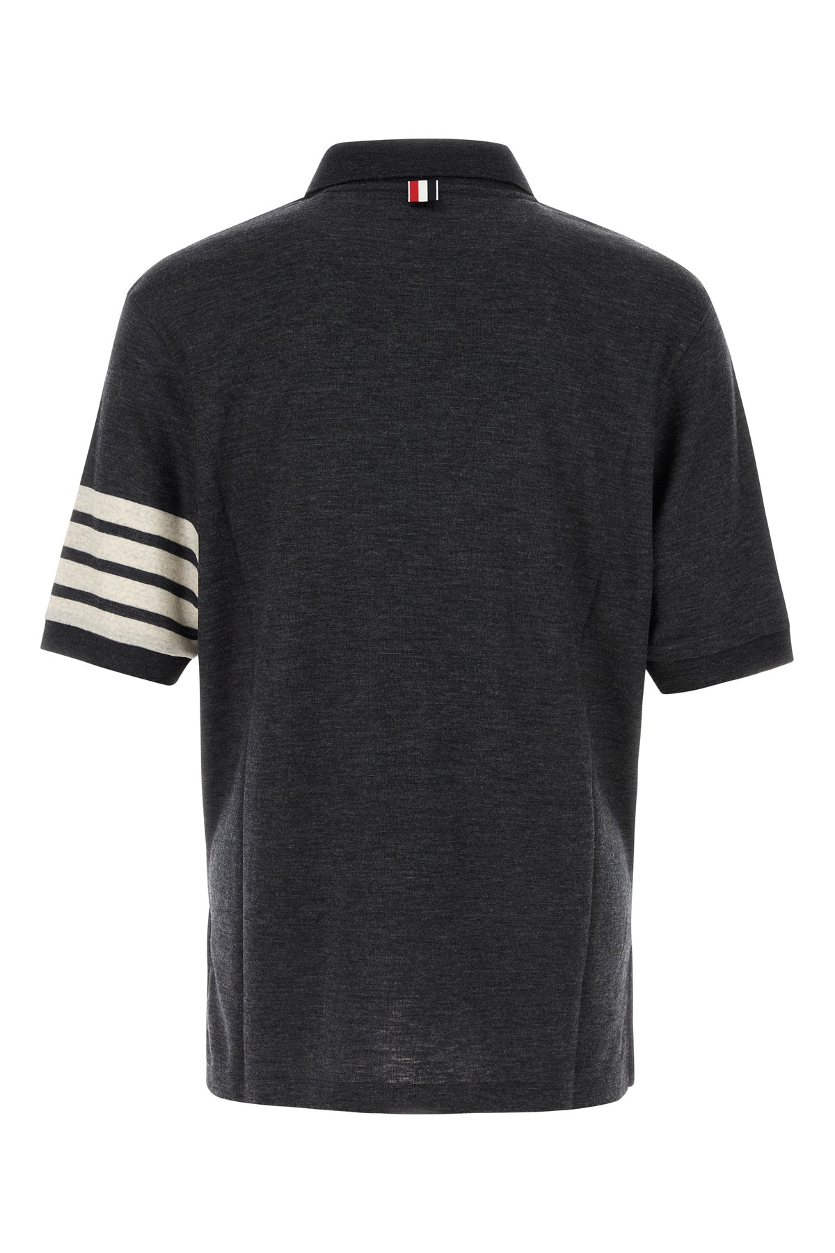 Polo shirt realized in pure virgin wool characterized by striped embroidery on the sleeve enriched by iconic tricolor label at the back.