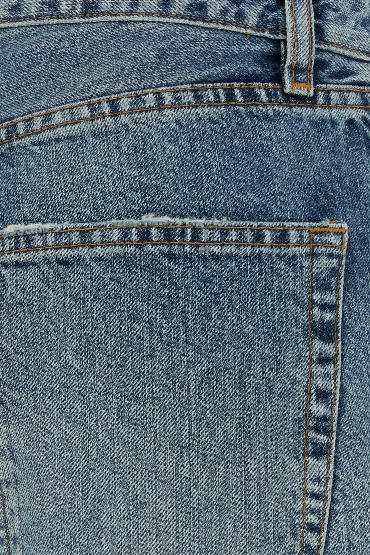 Jeans realized in stonewashed and slightly distressed pure cotton denim.