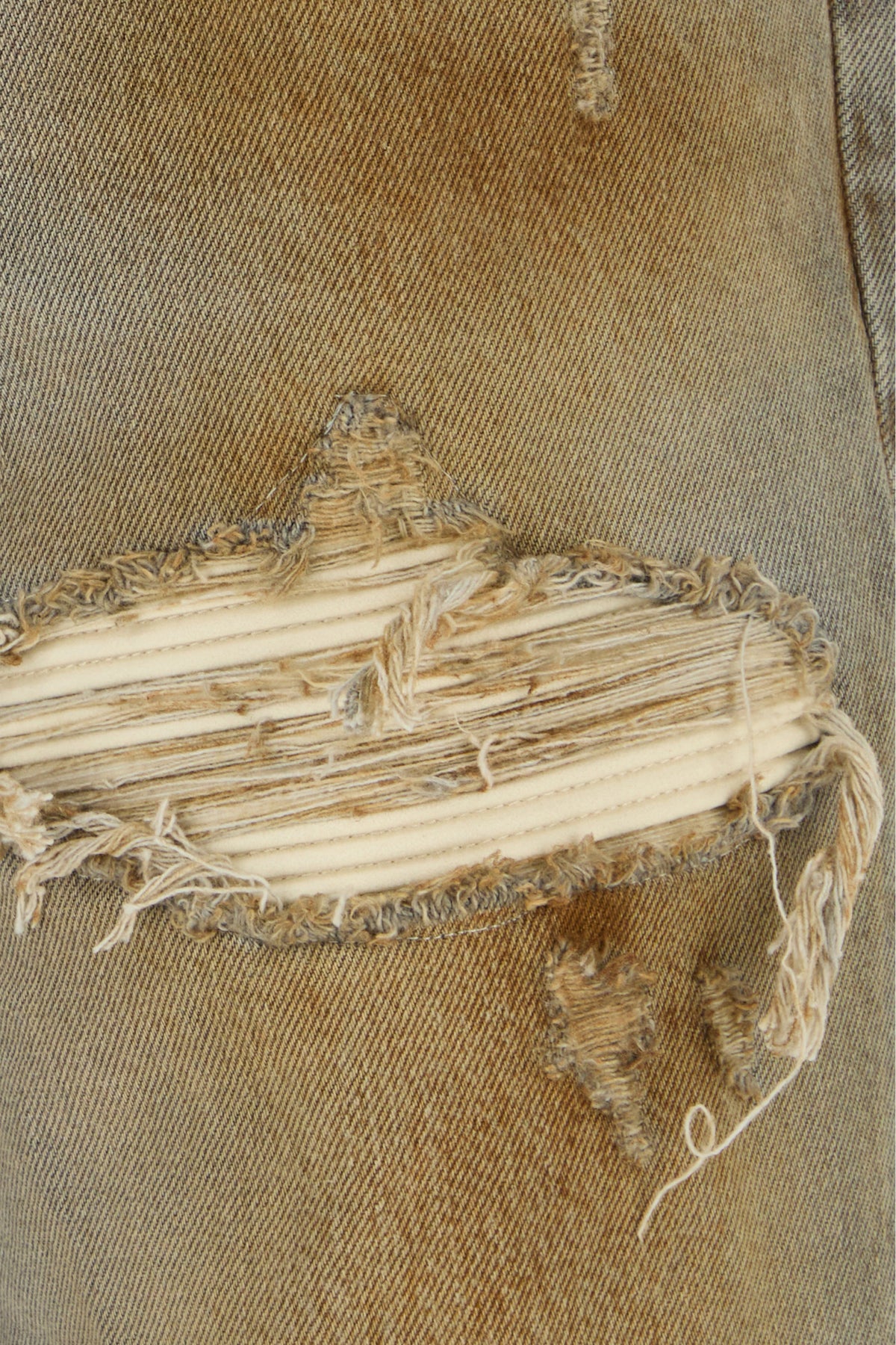Jeans realized in vintage-effect pure cotton denim with repaired rips enriched by logoed label at the back.