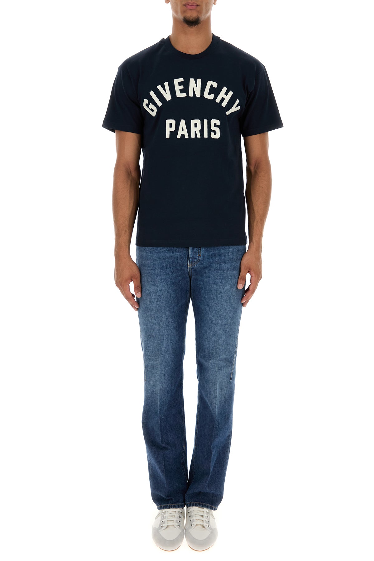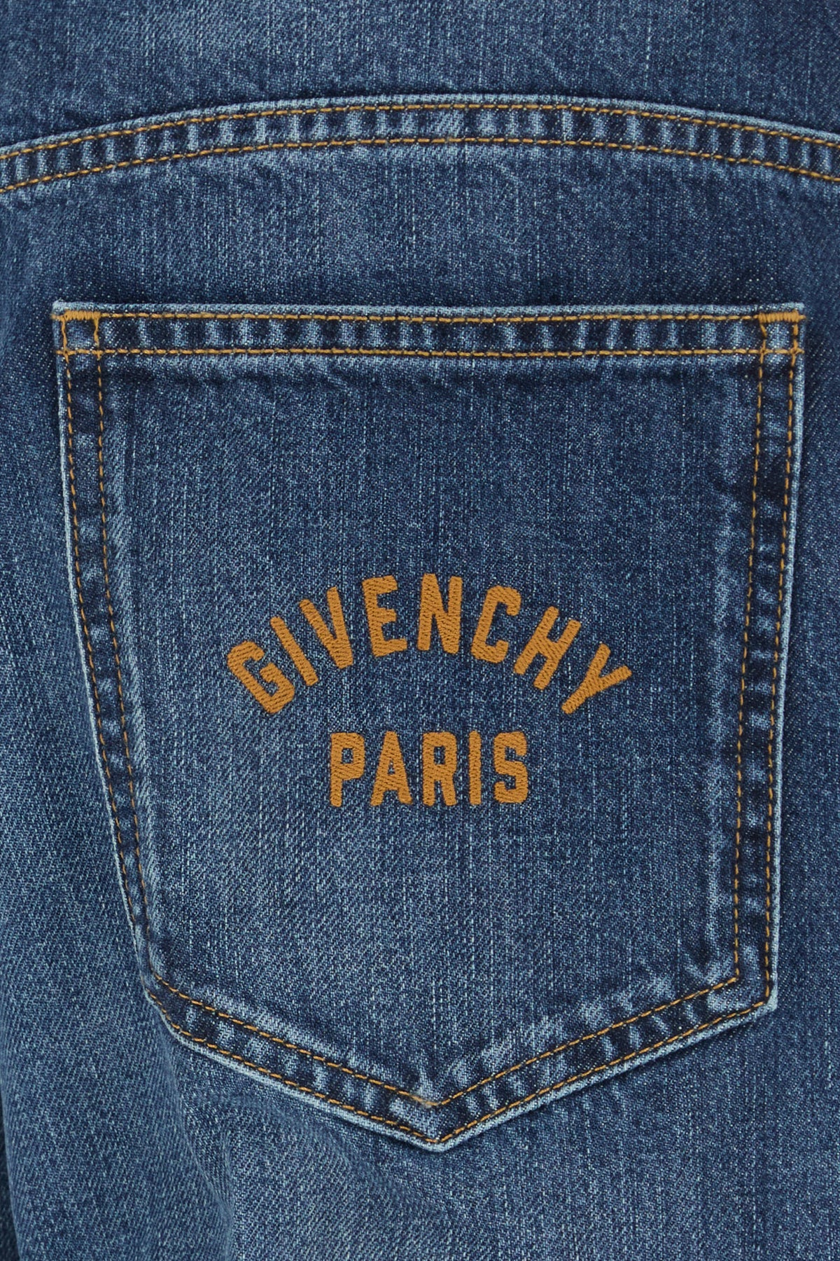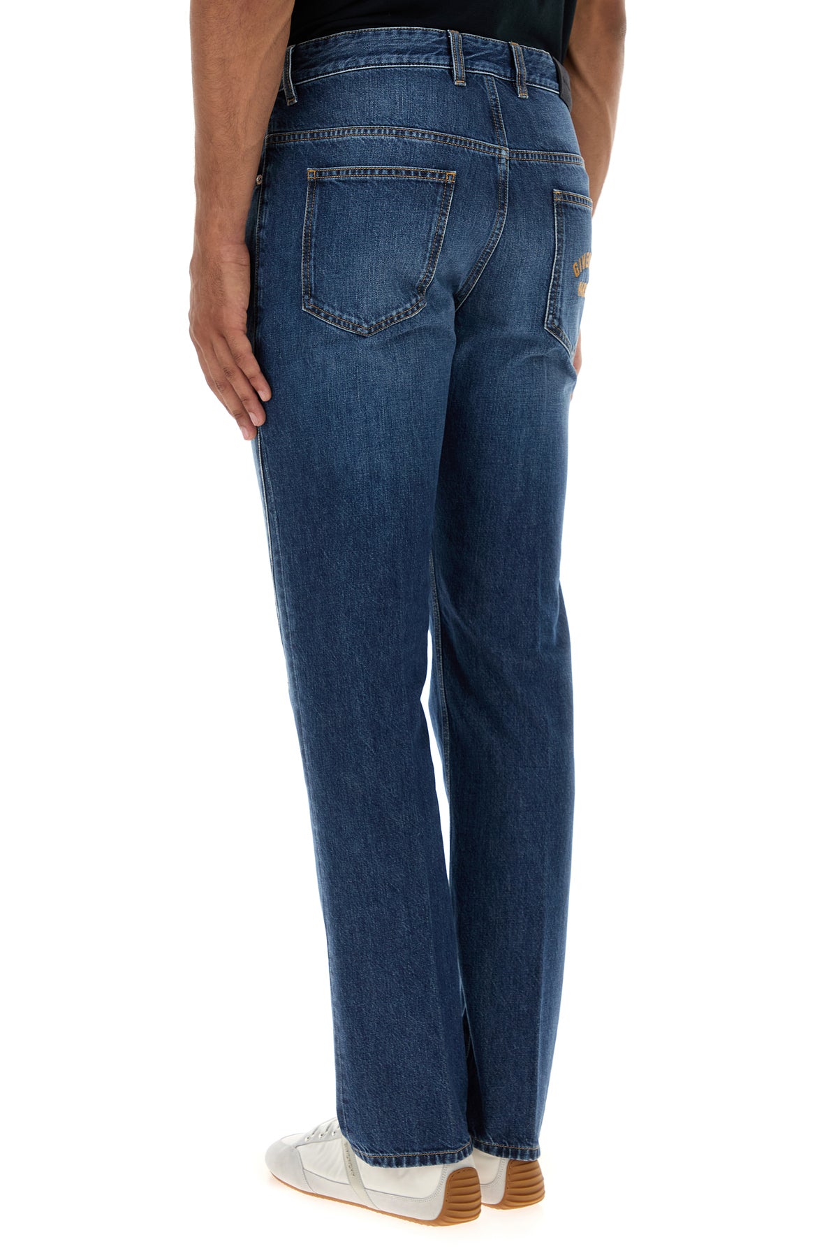 Jeans realized in stonewashed pure cotton denim characterized by contrasting embroidered logo at the back.