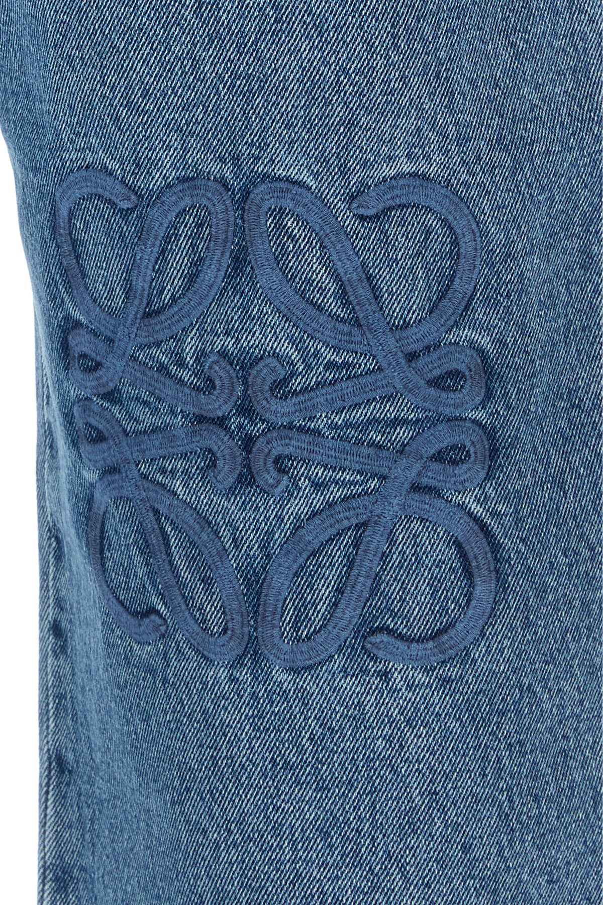 Baggy jeans realized in stonewashed pure cotton characterized by tonal Anagram embroidery at the front.