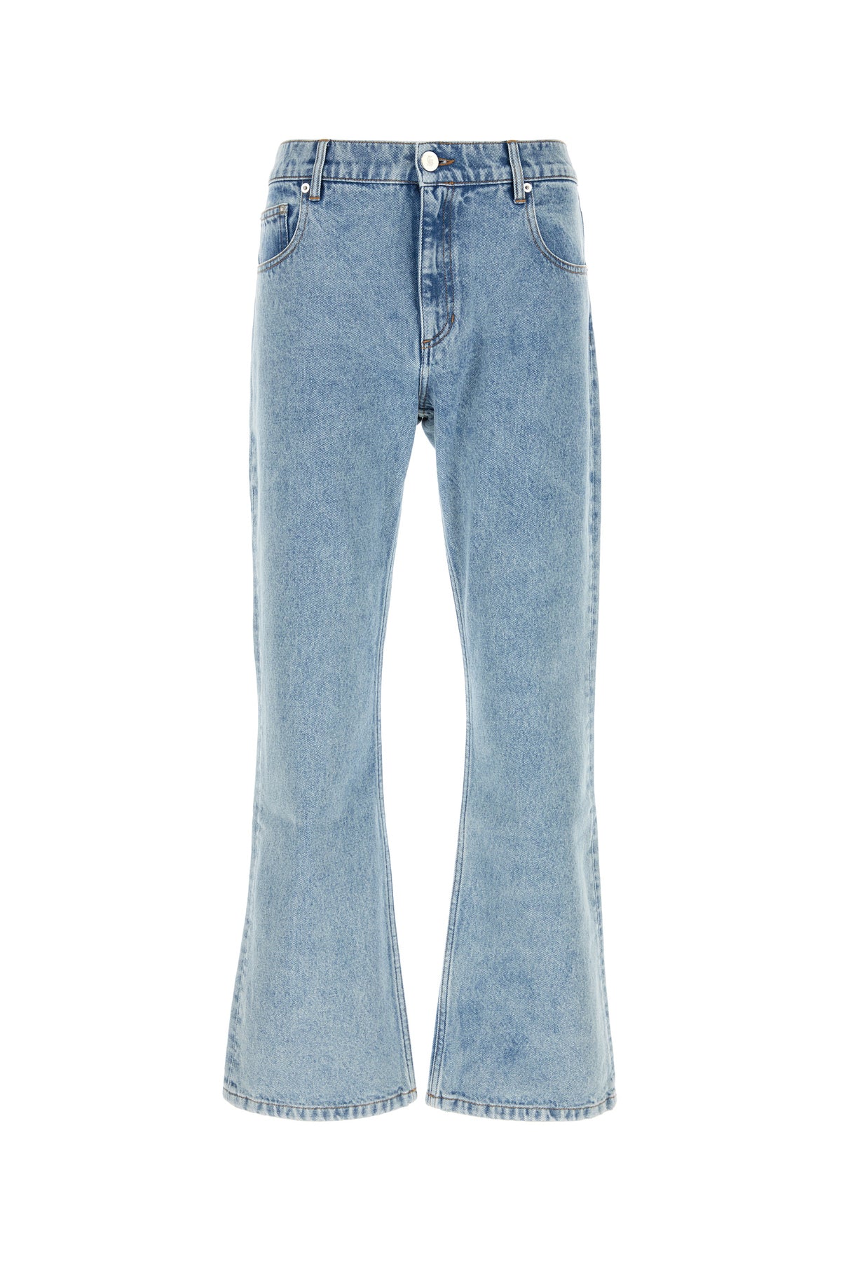Flared jeans realized in stonewashed pure organic cotton enriched by logoed label at the back.