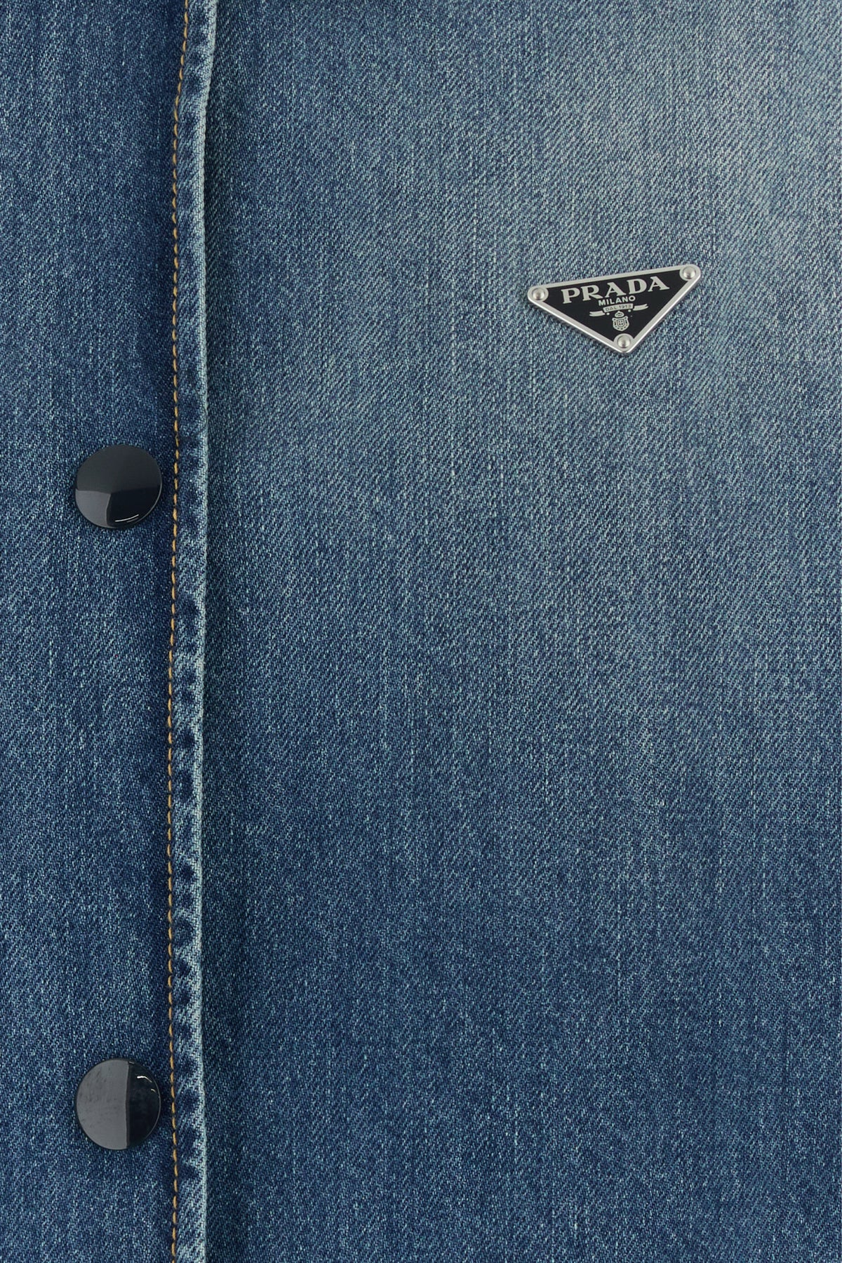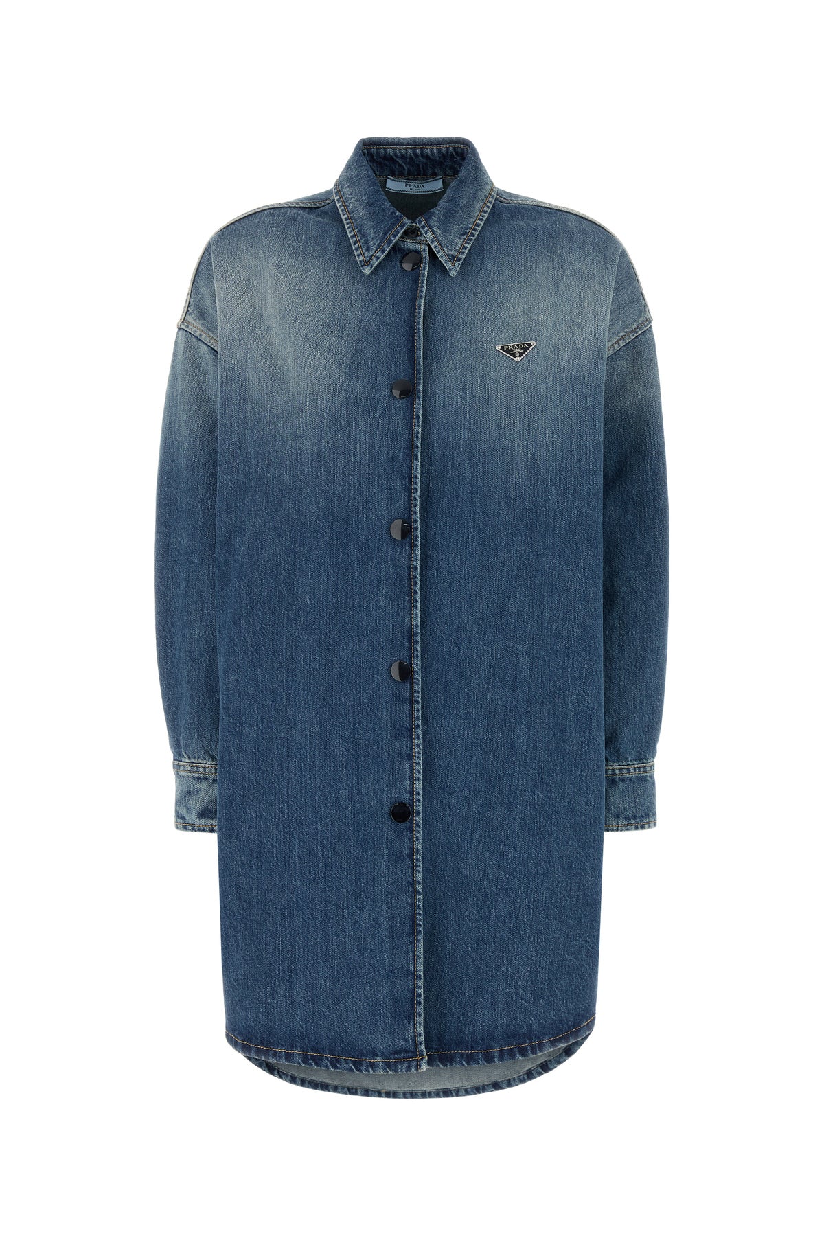 Oversize shirt realized in stonewashed pure cotton denim enriched by iconic logoed metal triangle on the chest.