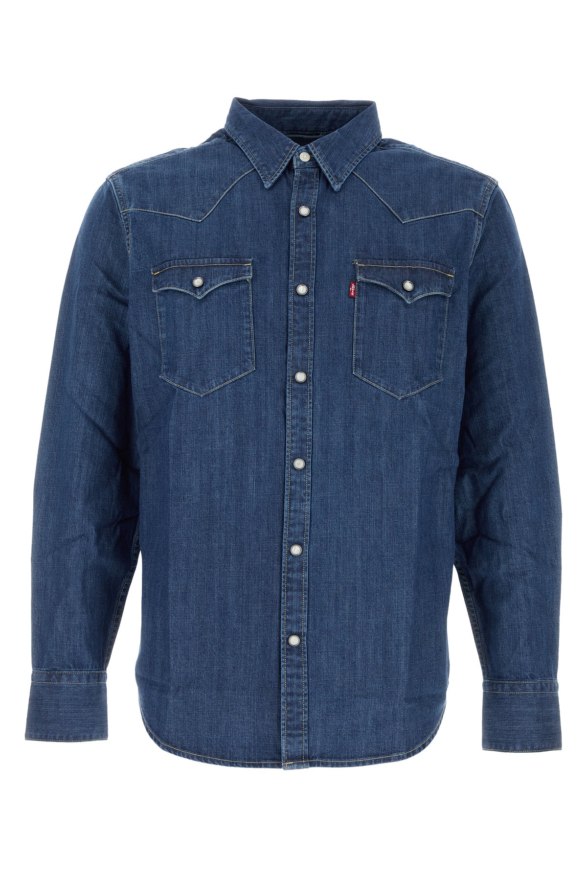 Shirt realized in pure cotton denim enriched by contrasting logoed label on the chest.