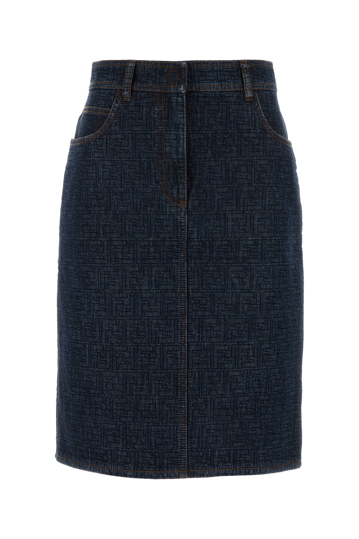 Skirt realized in pure cotton denim characterized by FF embroidery on the entire surface enriched by logoed label at the back.