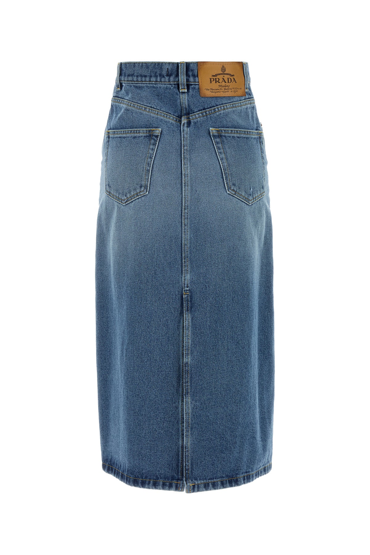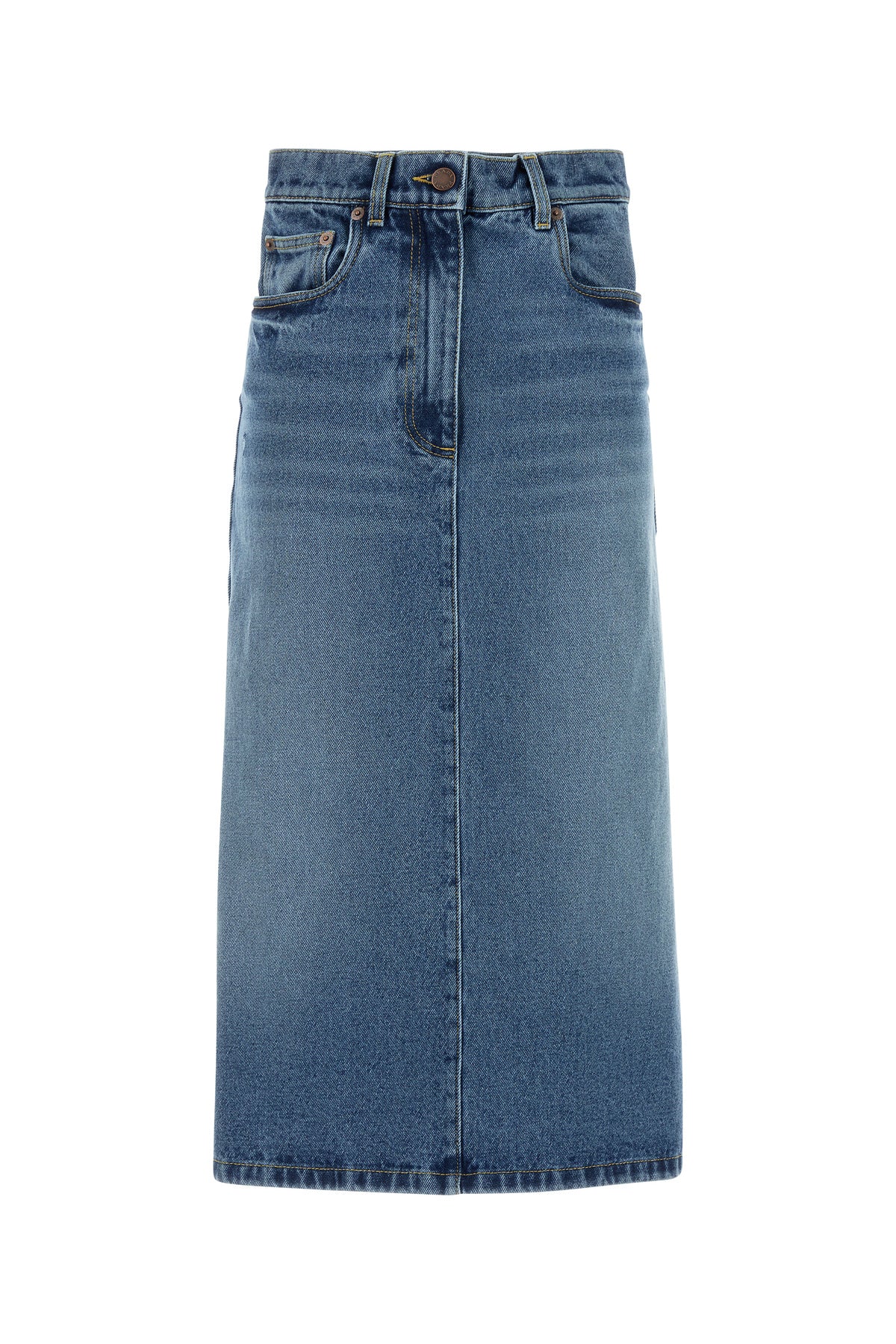 Midi-length skirt realized in stonewashed pure cotton denim enriched by logoed label at the back.