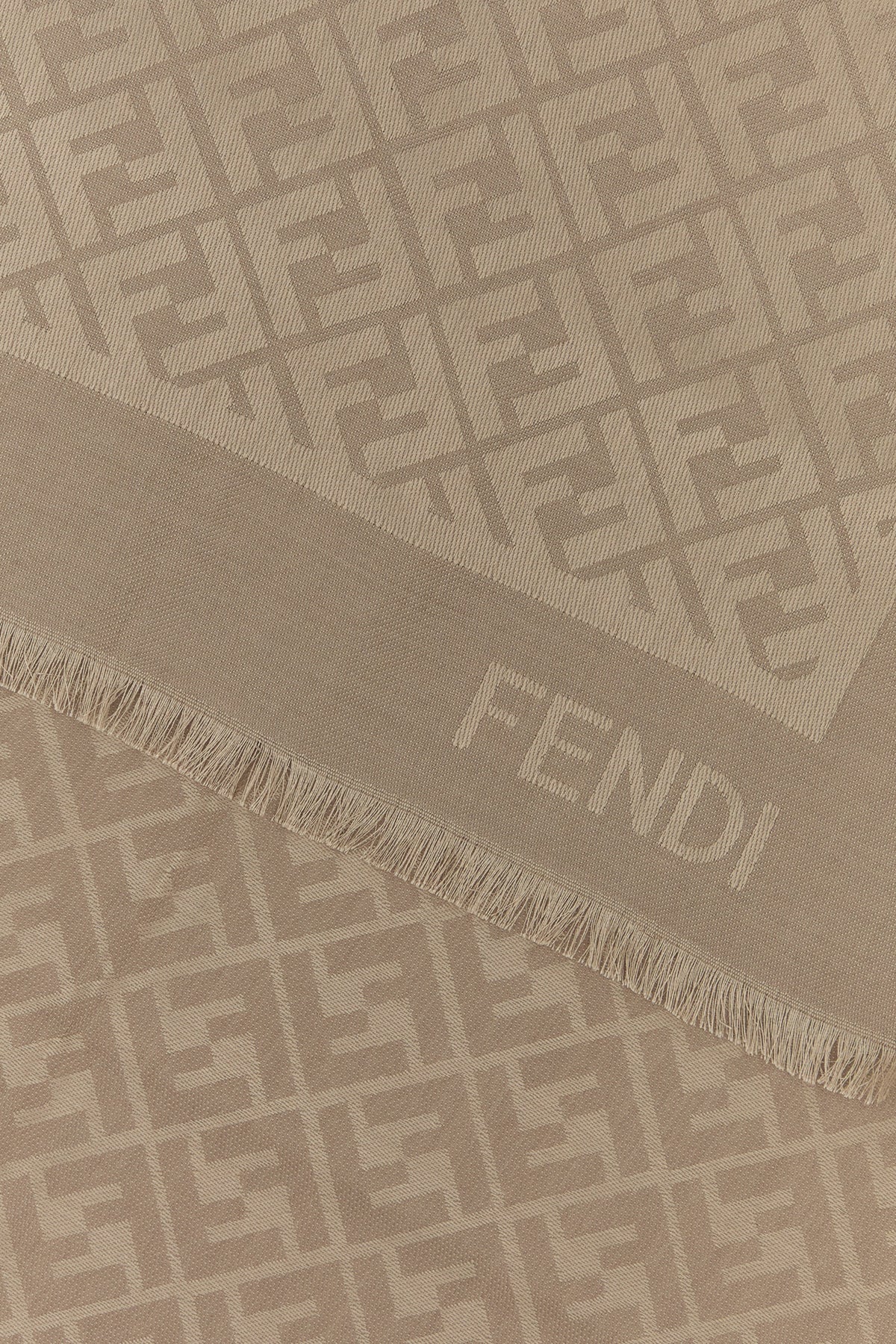Scarf realized in silk and wool characterized by tonal FF embroidery on the entire surface.