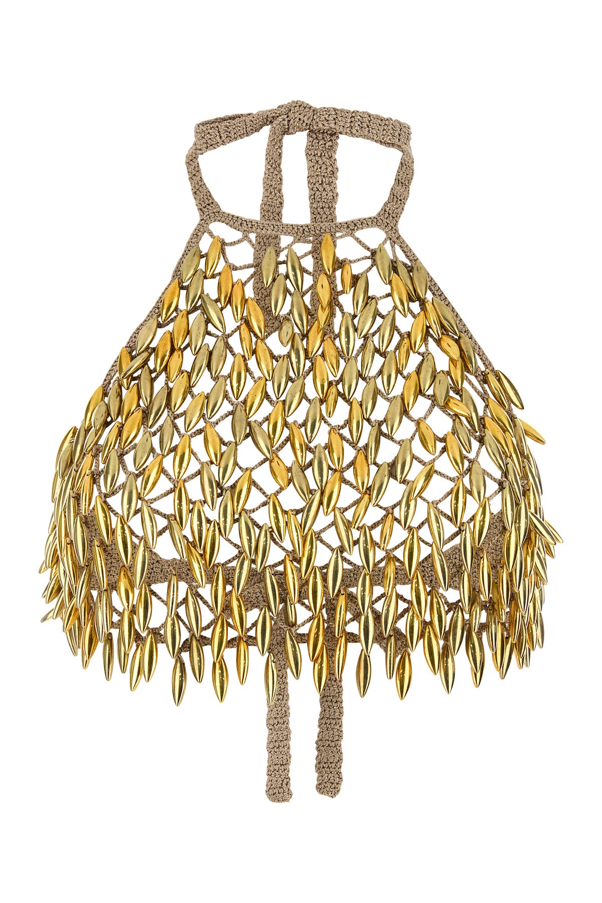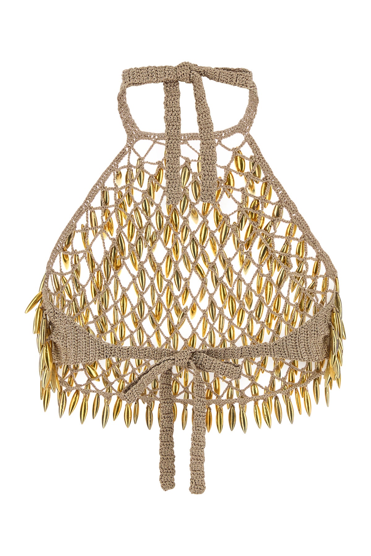 Top realized in crochet enriched by metal embellishments on the entire surface.