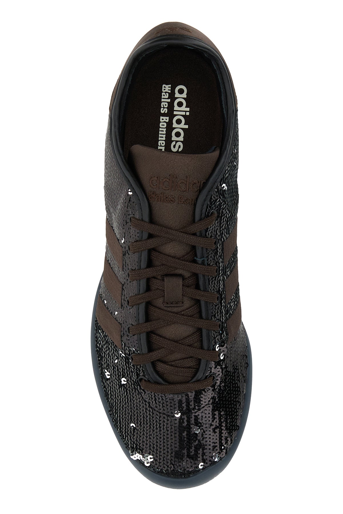 Sneakers created in collaboration with Adidas realized in fabric entirely covered by sequins characterized by embroidered logo at the back.