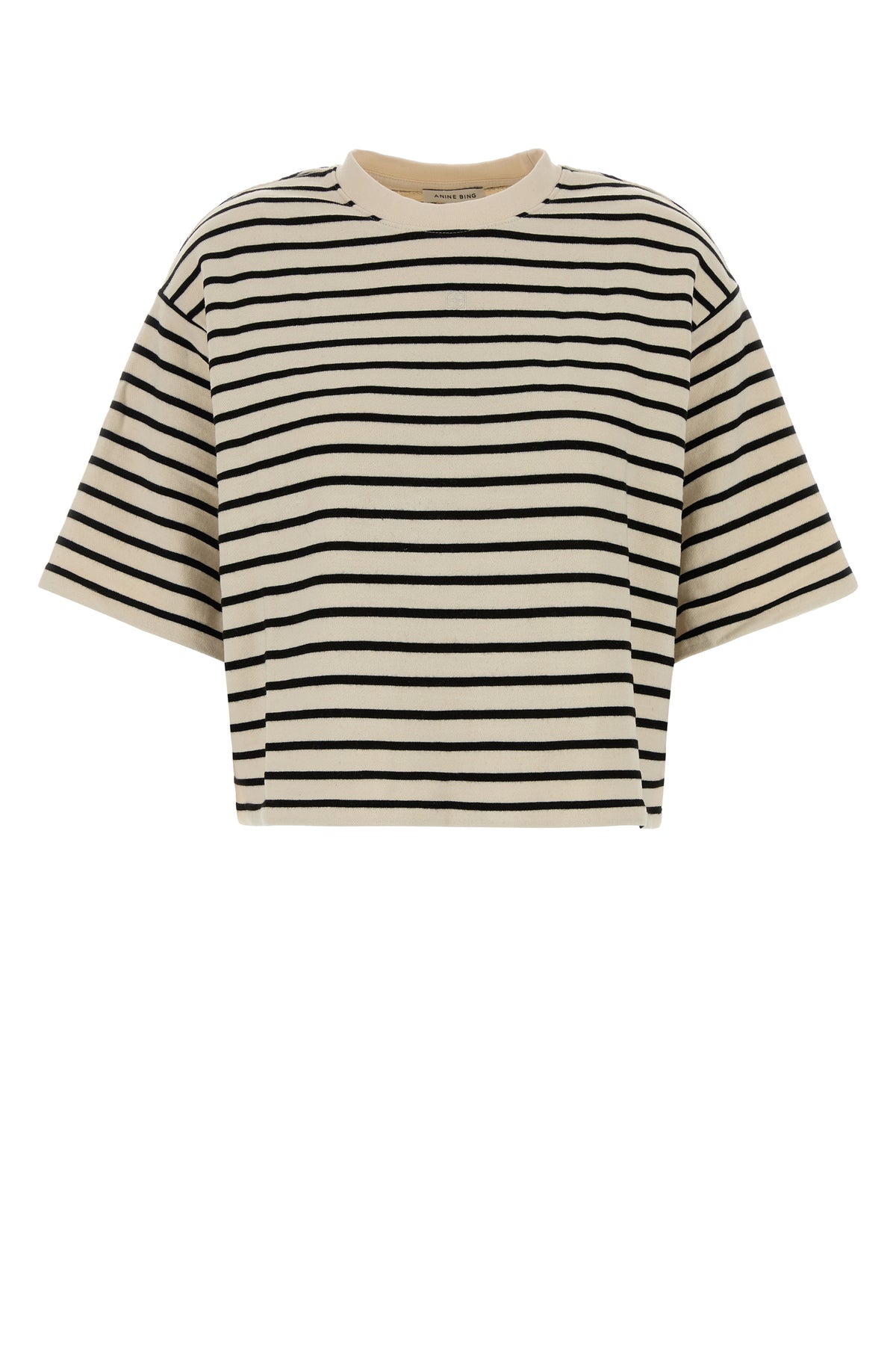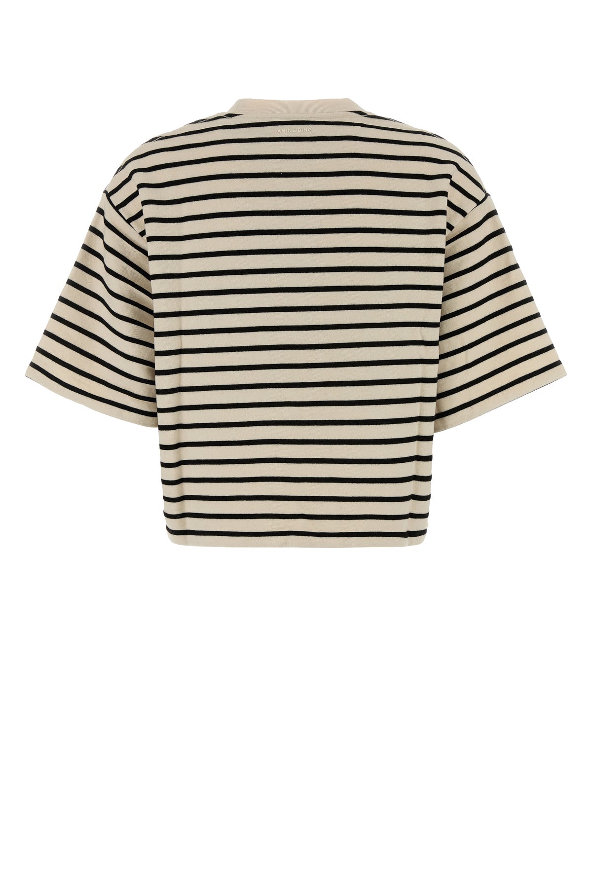 Cropped-cut t-shirt realized in cotton blend characterized by striped embroidery on the entires surface and embroidered logo on the chest.