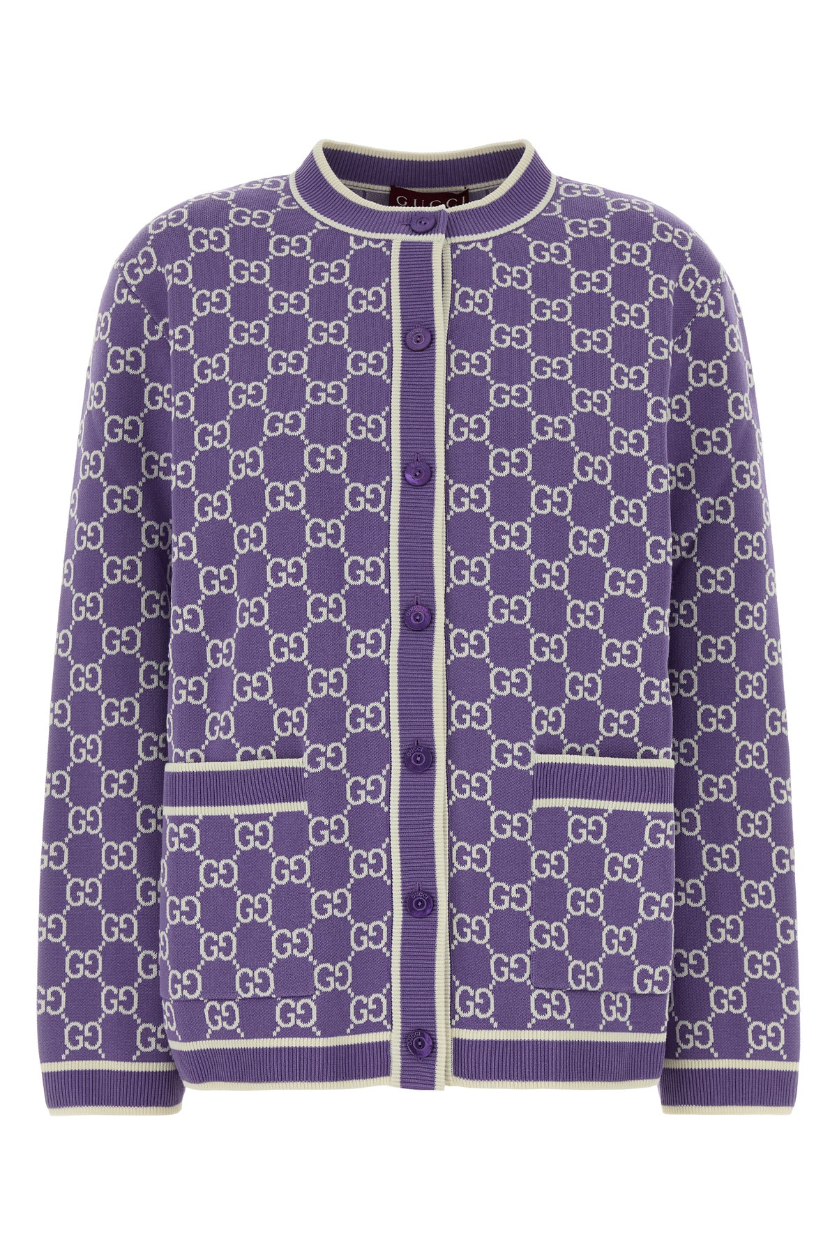 Cardigan realized in pure cotton characterized by GG embroidery on the entire surface.