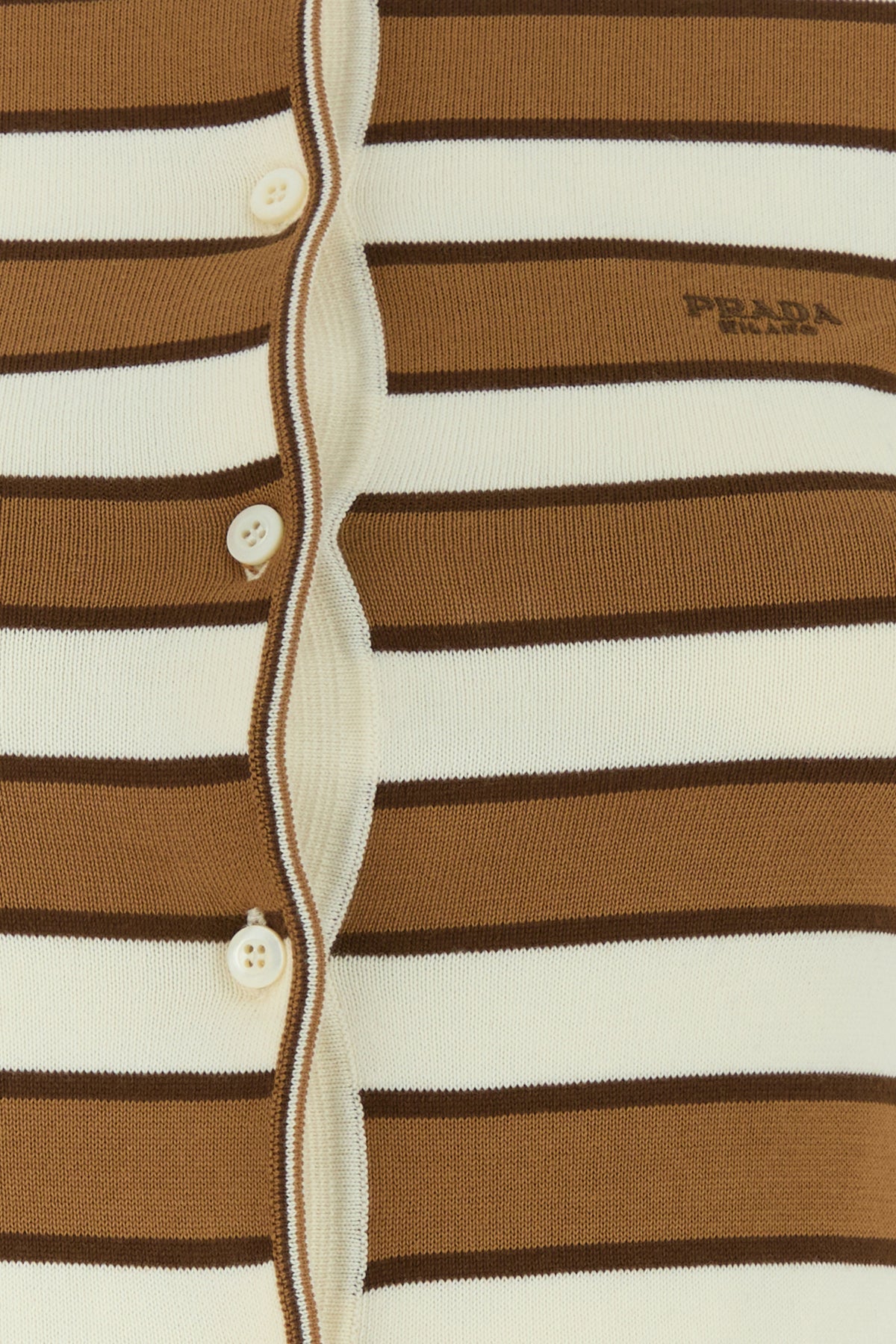 Short-sleeves cardigan realized in pure cotton characterized by striped embroidery on the entire surface and embroidered logo on the chest.