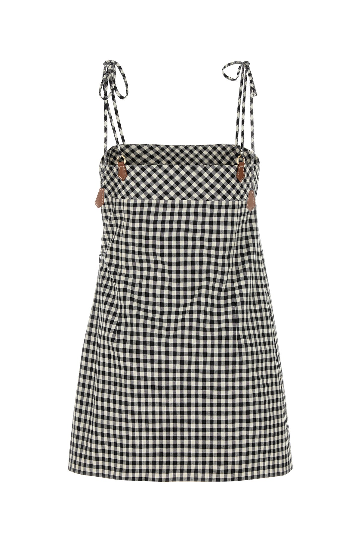 Mini dress realized in pure cotton characterized by checked embroidery on the entire surface enriched by logoed patch on the chest.