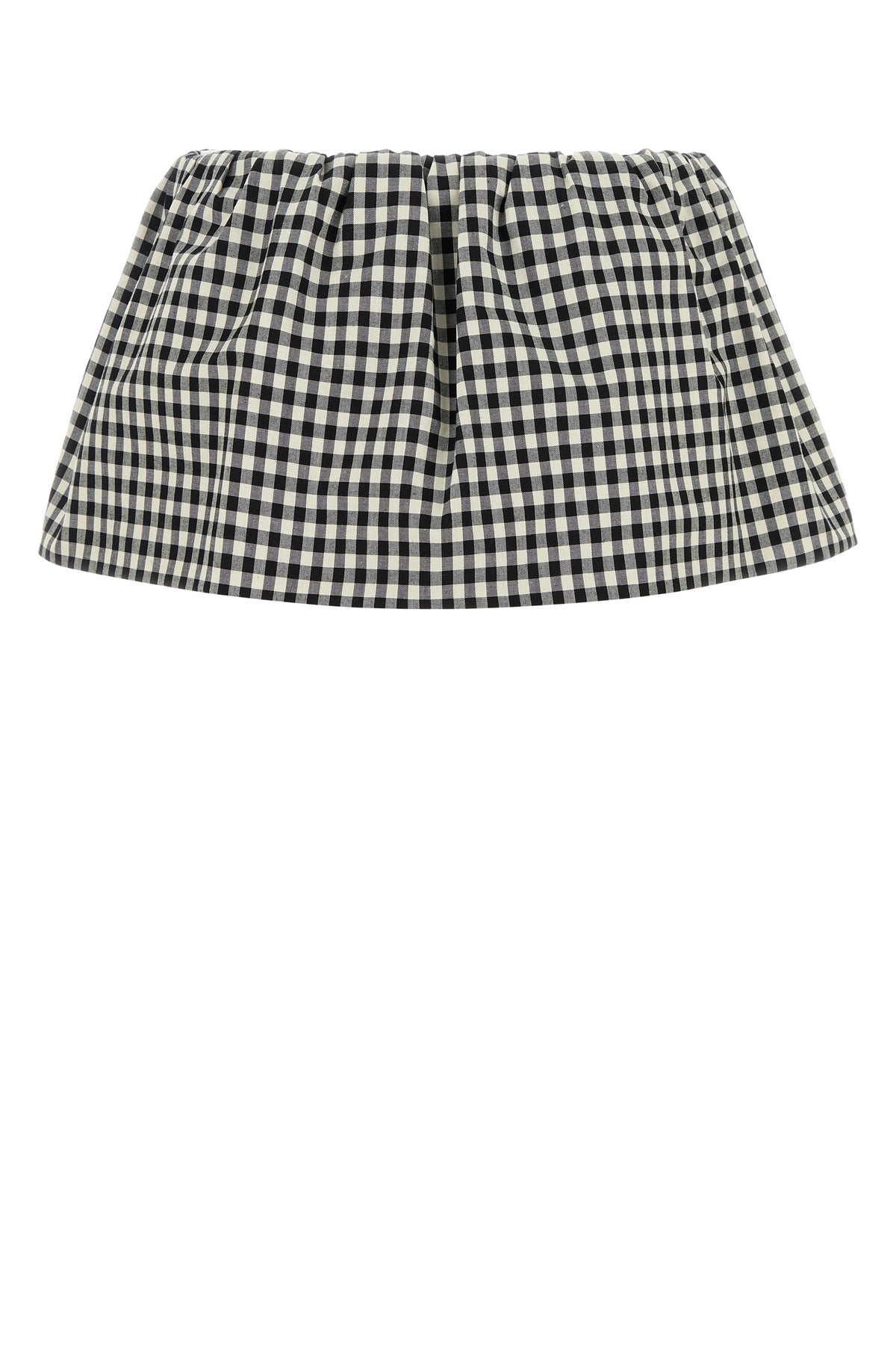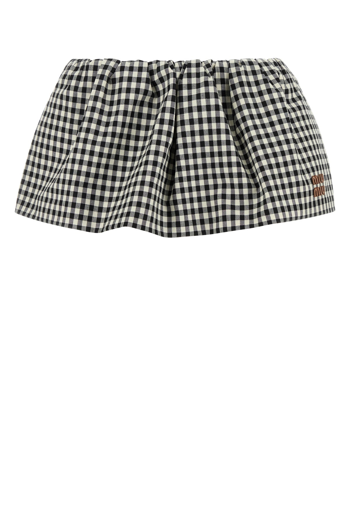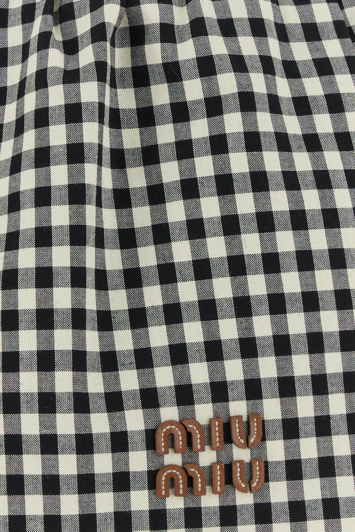 Mini skirt realized in pure cotton characterized by vichy motif embroidery on the entire surface enriched by leather logoed patch at the front.