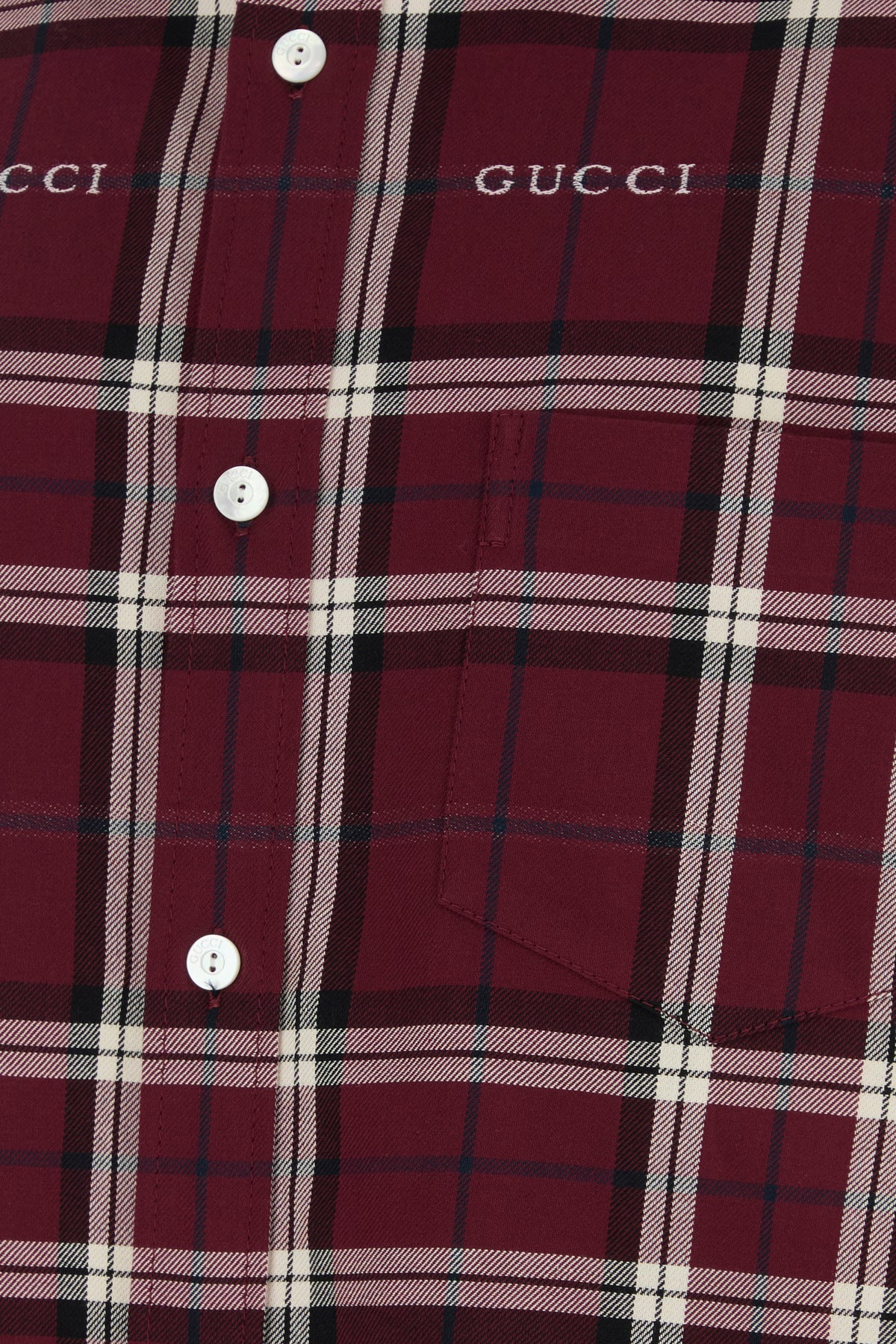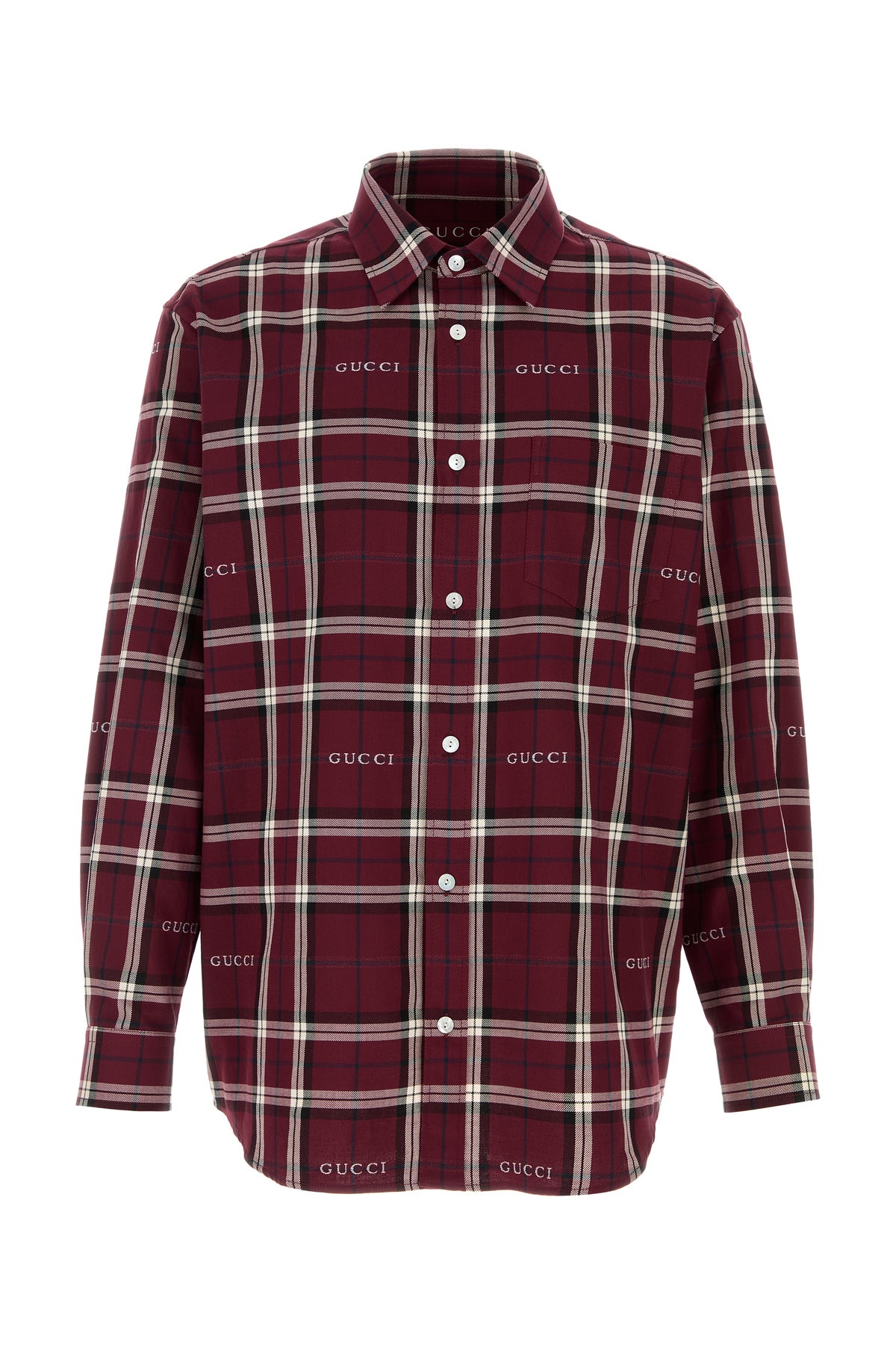 Shirt realized in pure cotton characterized by tartan motif embroidery on the entire surface and Gucci embroidery on the chest.