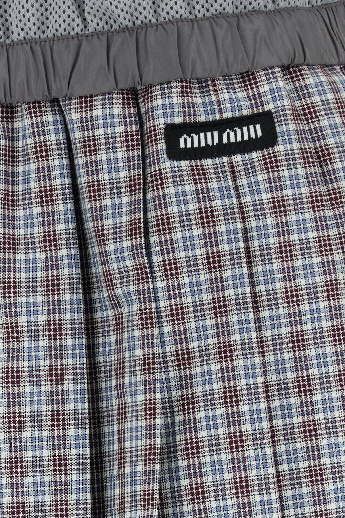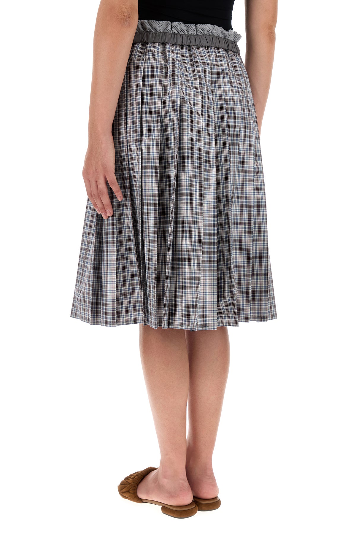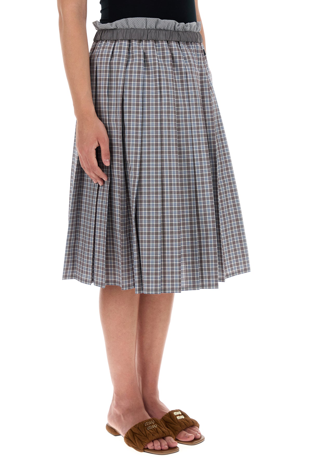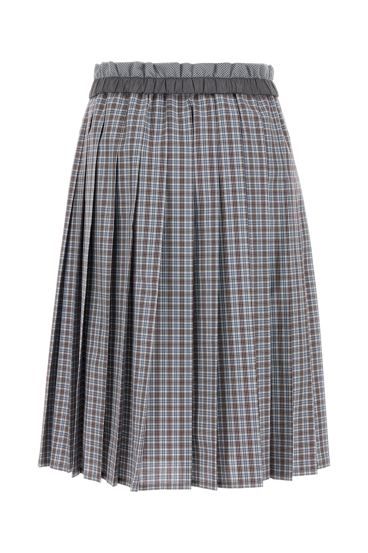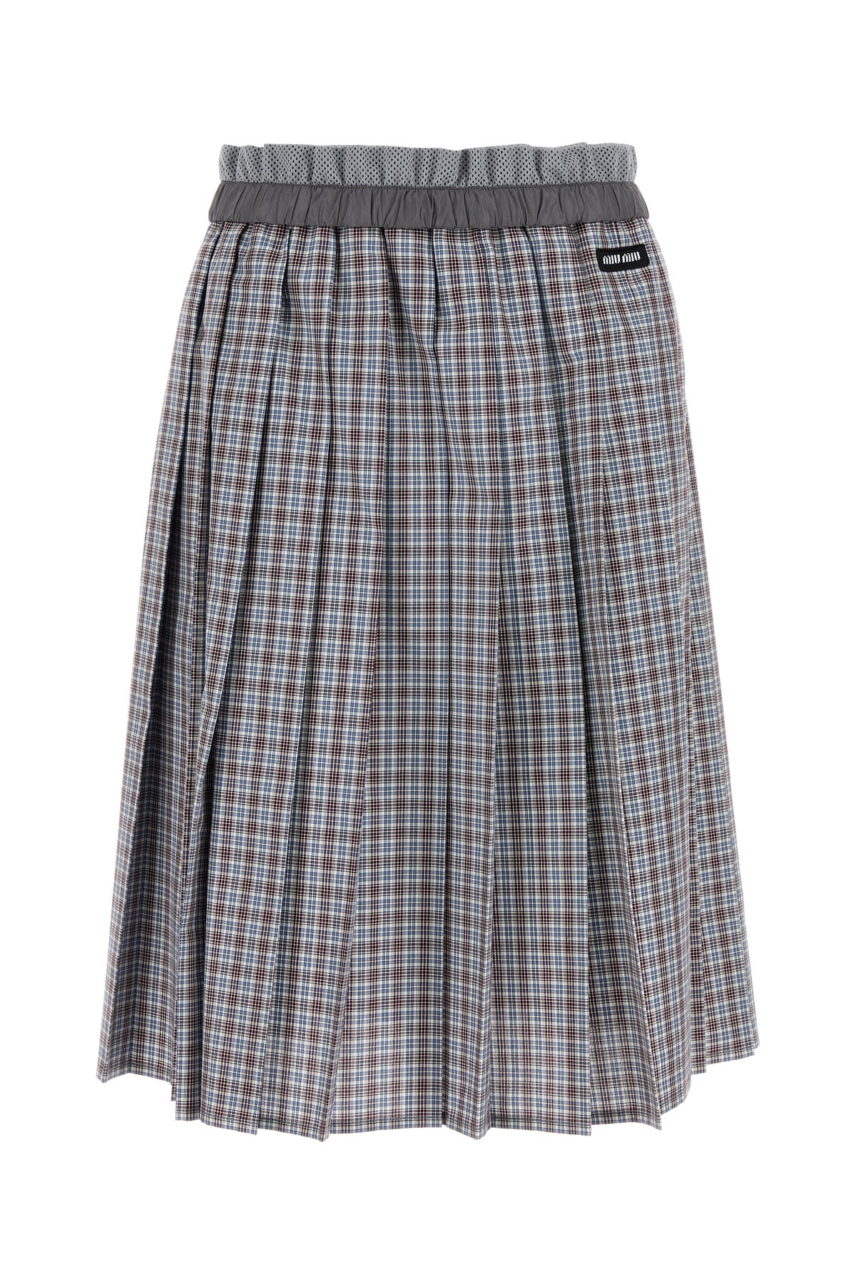 Pleated skirt realized in pure cotton with mesh insert at the top characterized by checked embroidery on the entire surface enriched by logged label at the top.