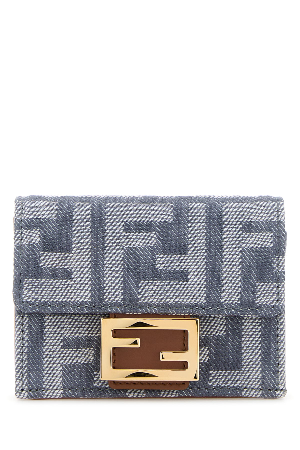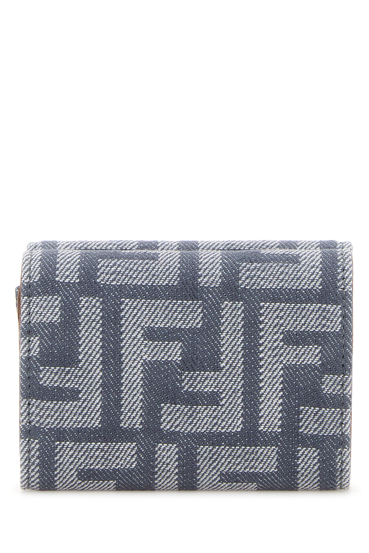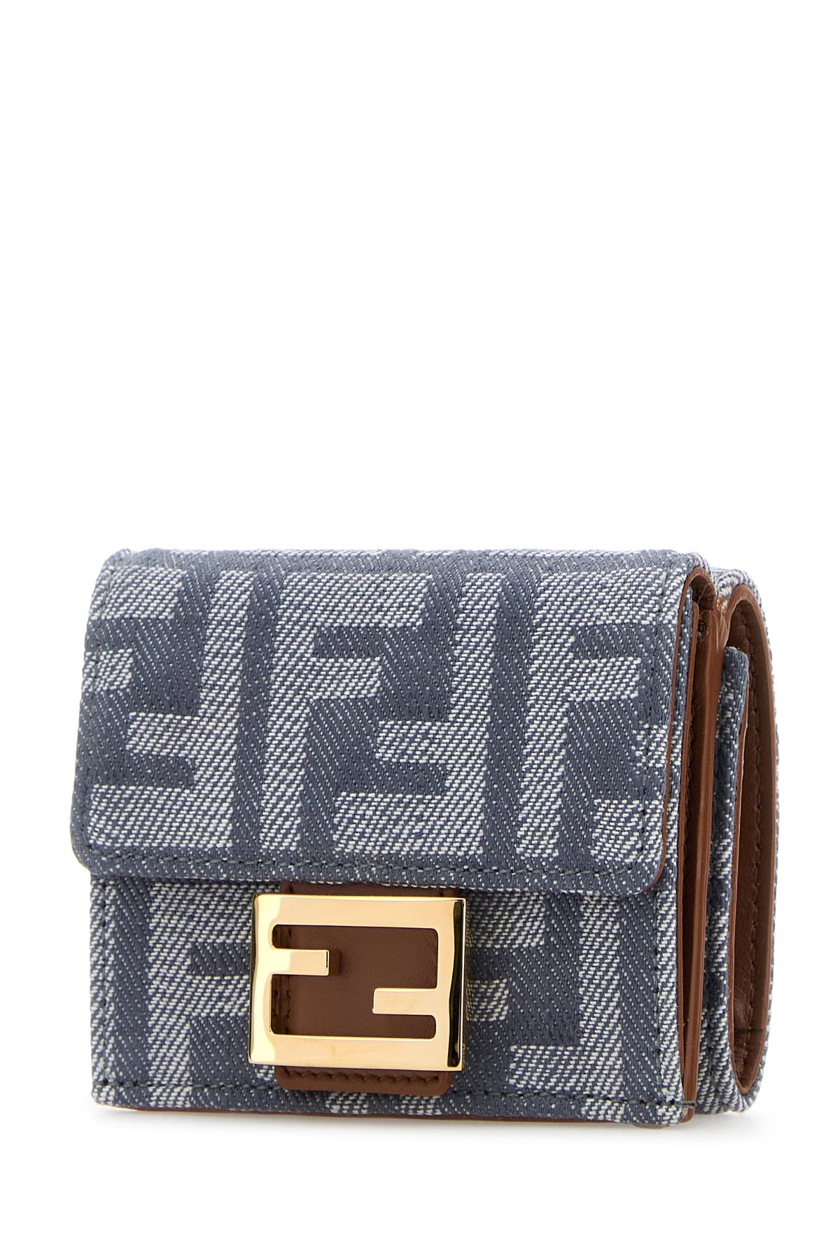 Wallet realized denim characterized by FF embroidery on the entire surface enriched by metal FF detail at the front.