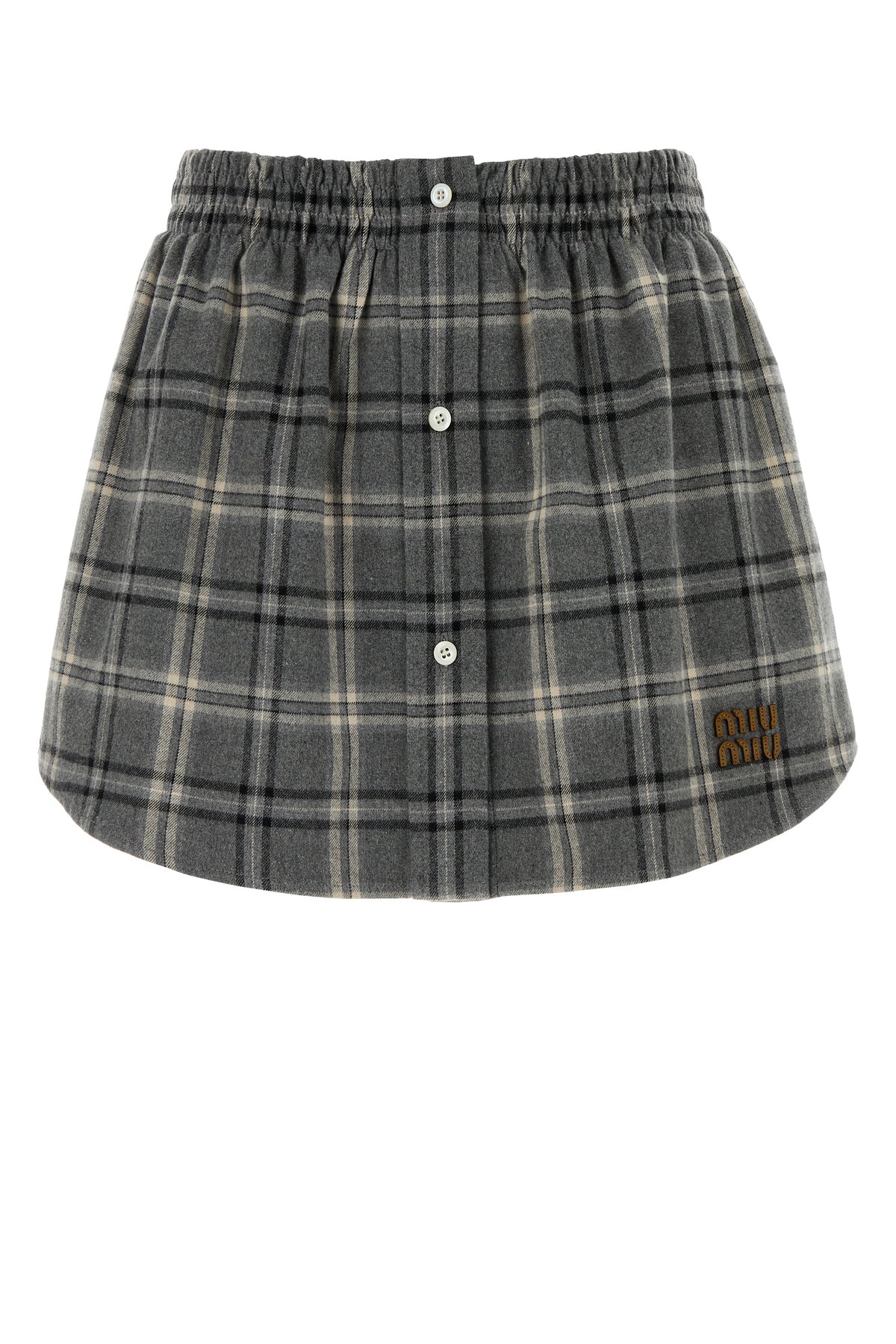 Mini. skirt realized in pure cotton flannel characterized by checked embroidery on the entire surface enriched by logoed patch on the hemline.