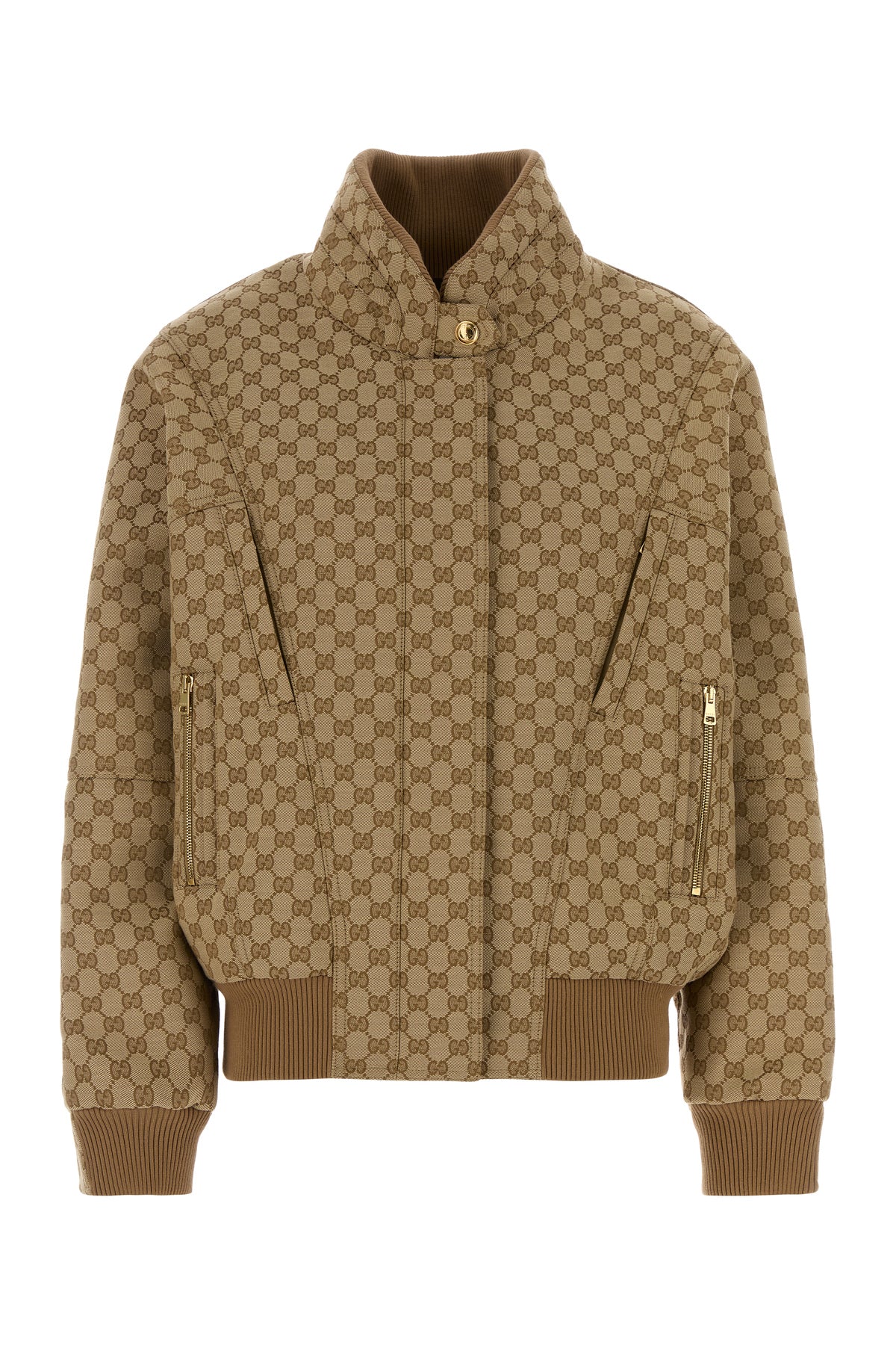 Bomber jacket realized in jacquard characterized by GG embroidery on the entire surface.