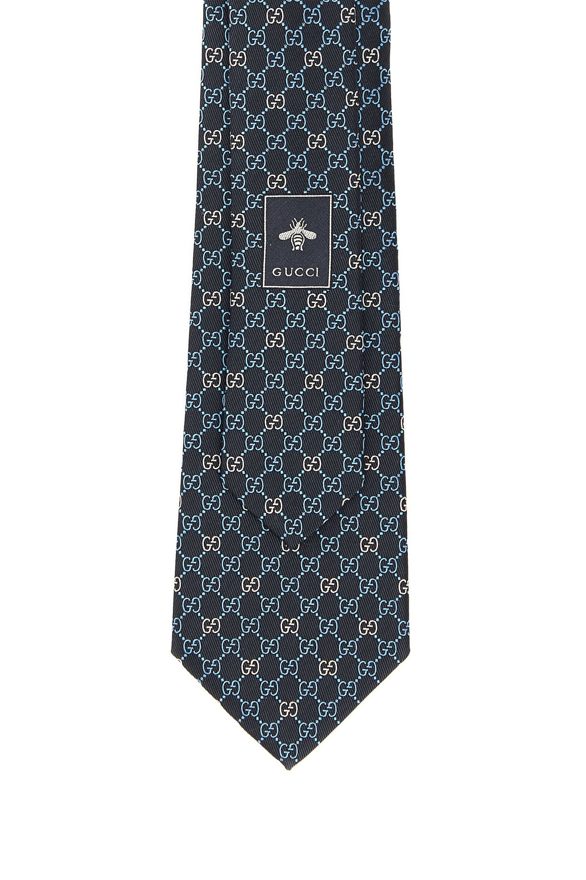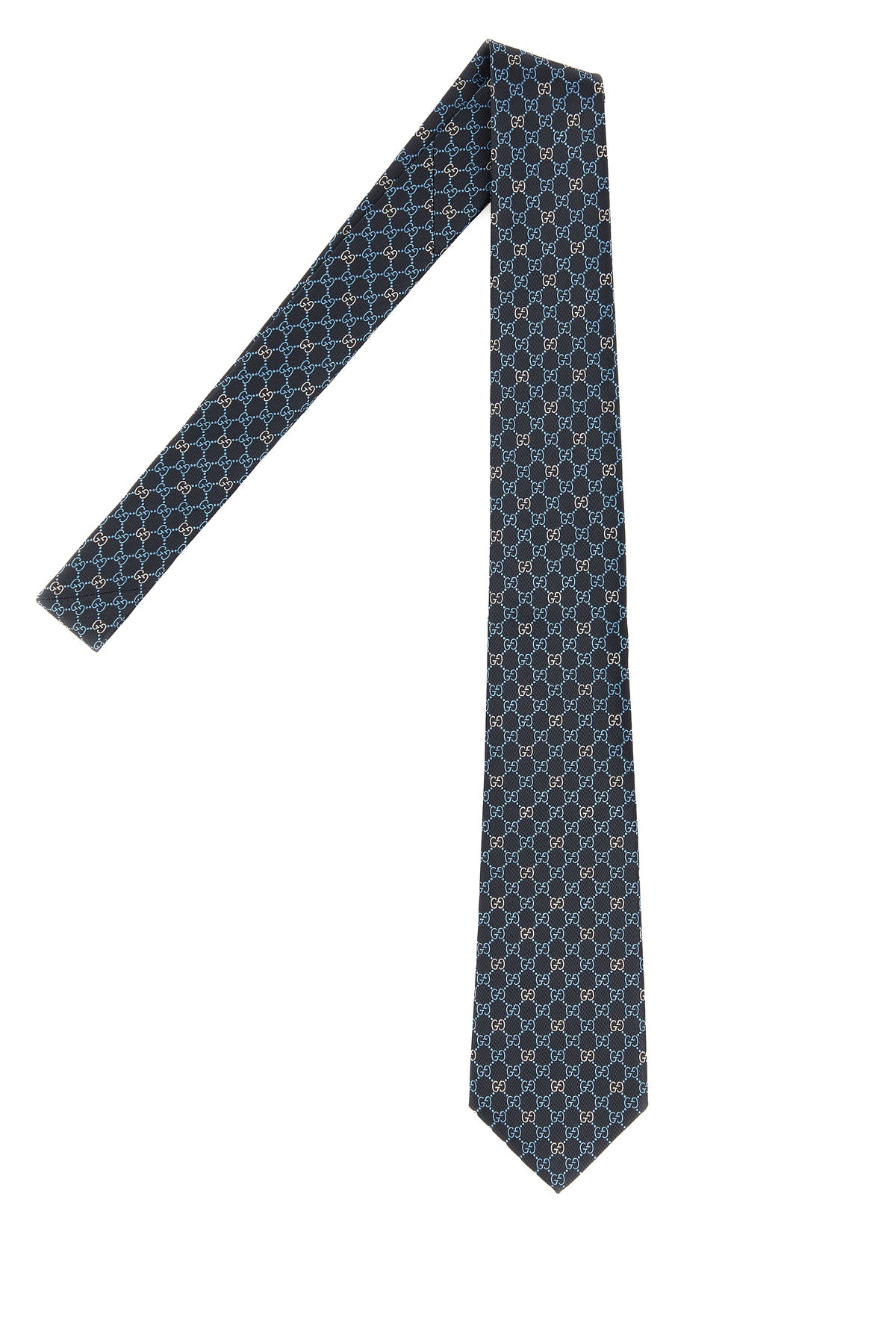 Tie realized in pure silk jacquard characterized by GG embroidery on the entire surface.
