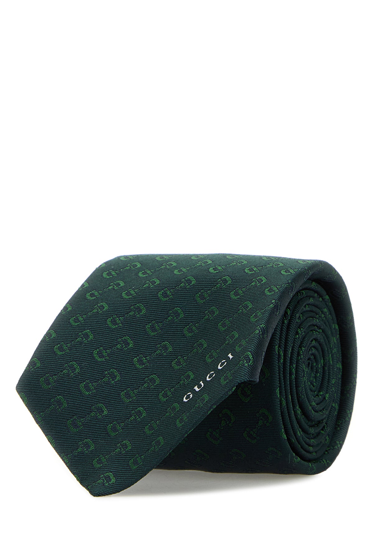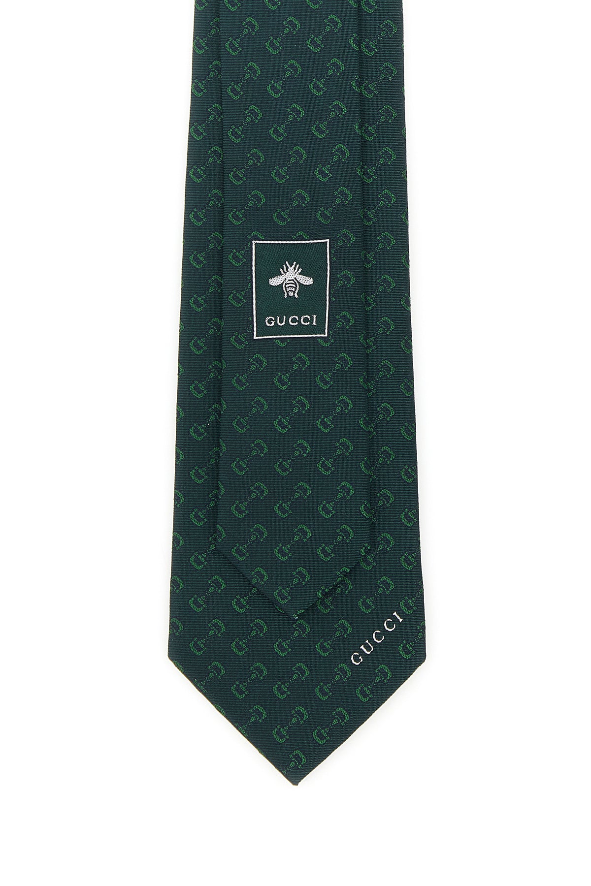 Tie realized in pure silk characterized by Horsebit embroidery on the entire surface and embroidered logo on the hemline.