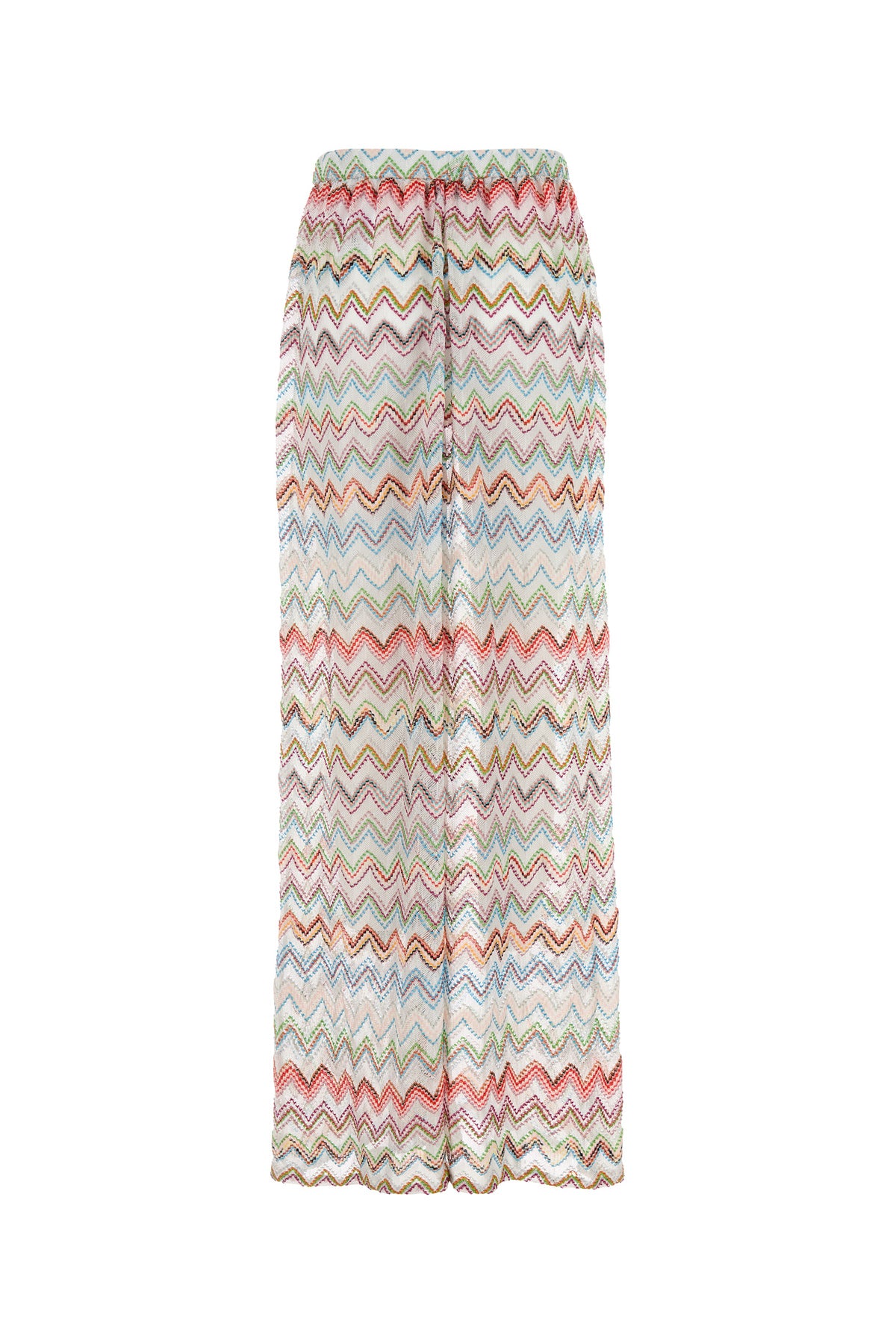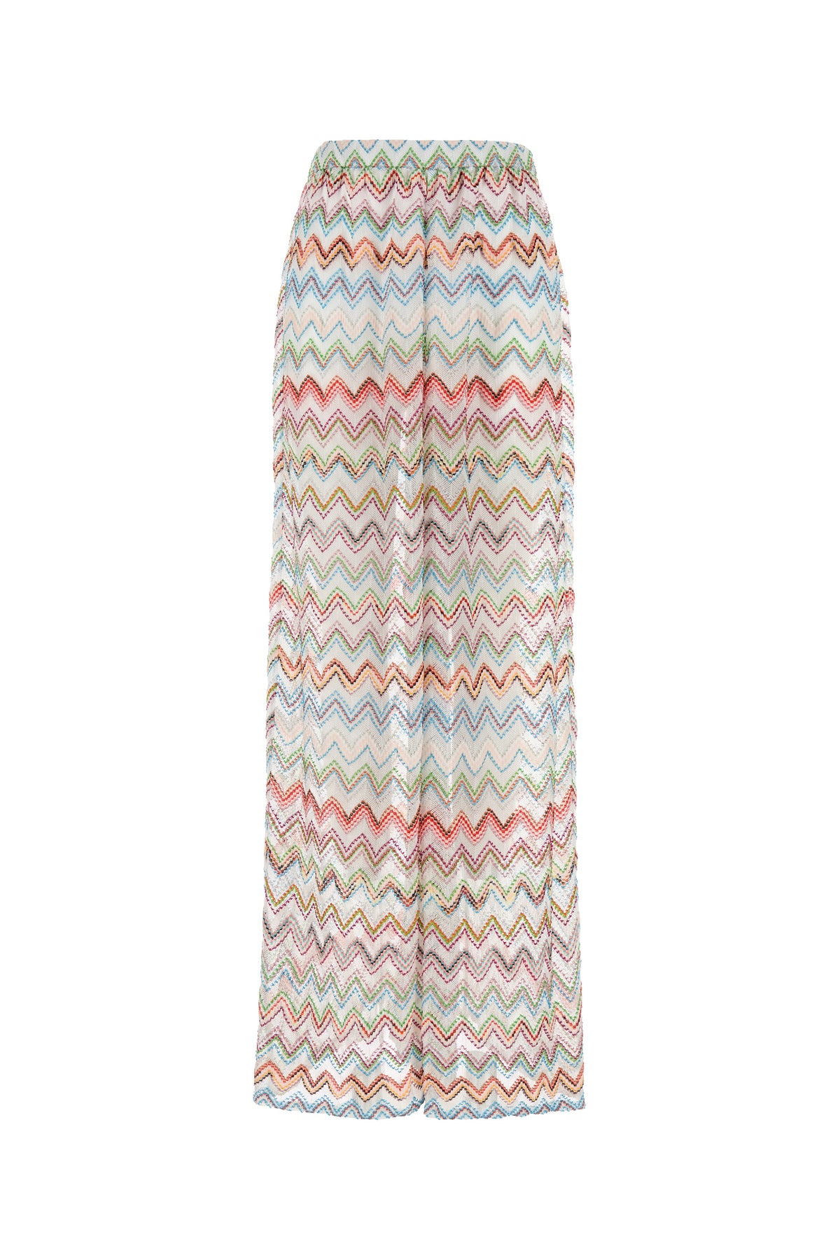 Wide-leg pant realized in viscose blend with lurex threads characterized by peculiar geometric embroidery on the entire surface.
