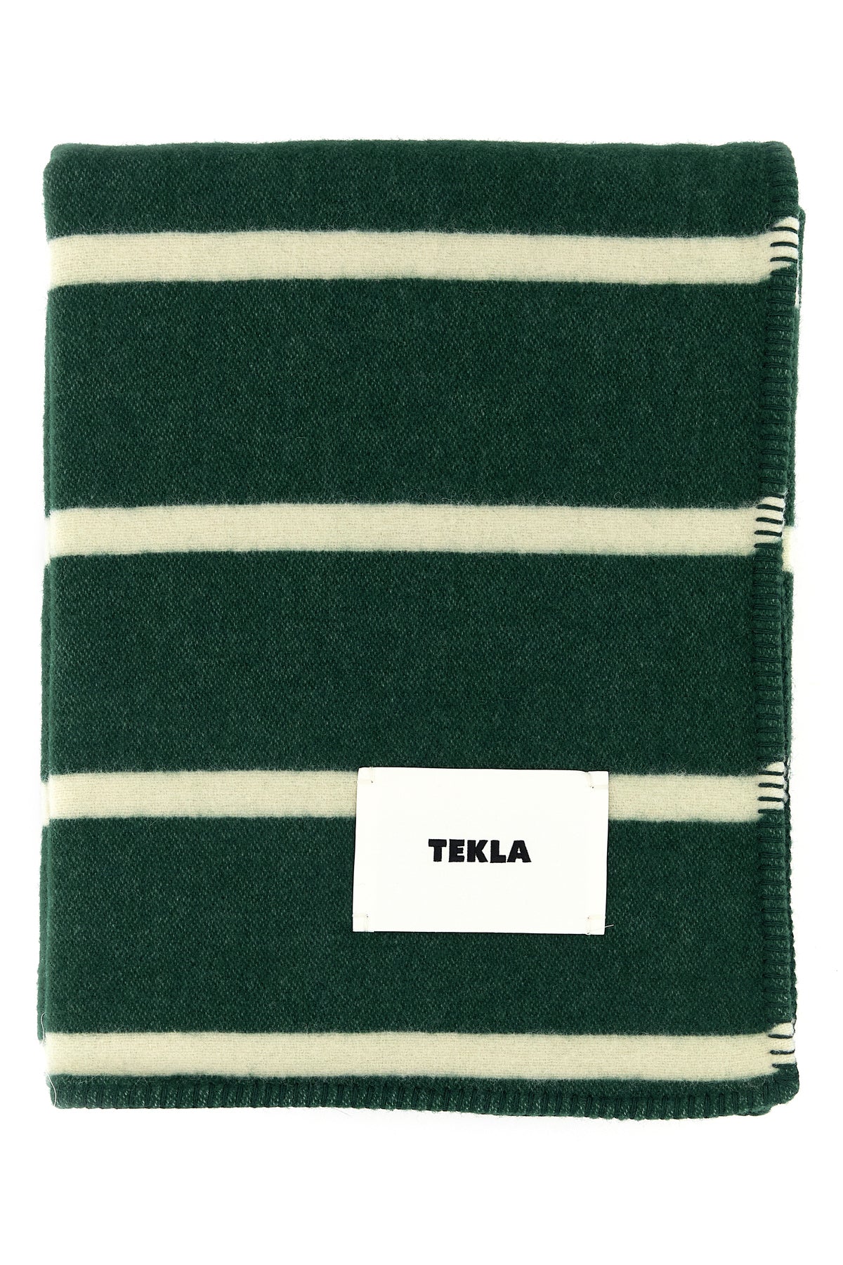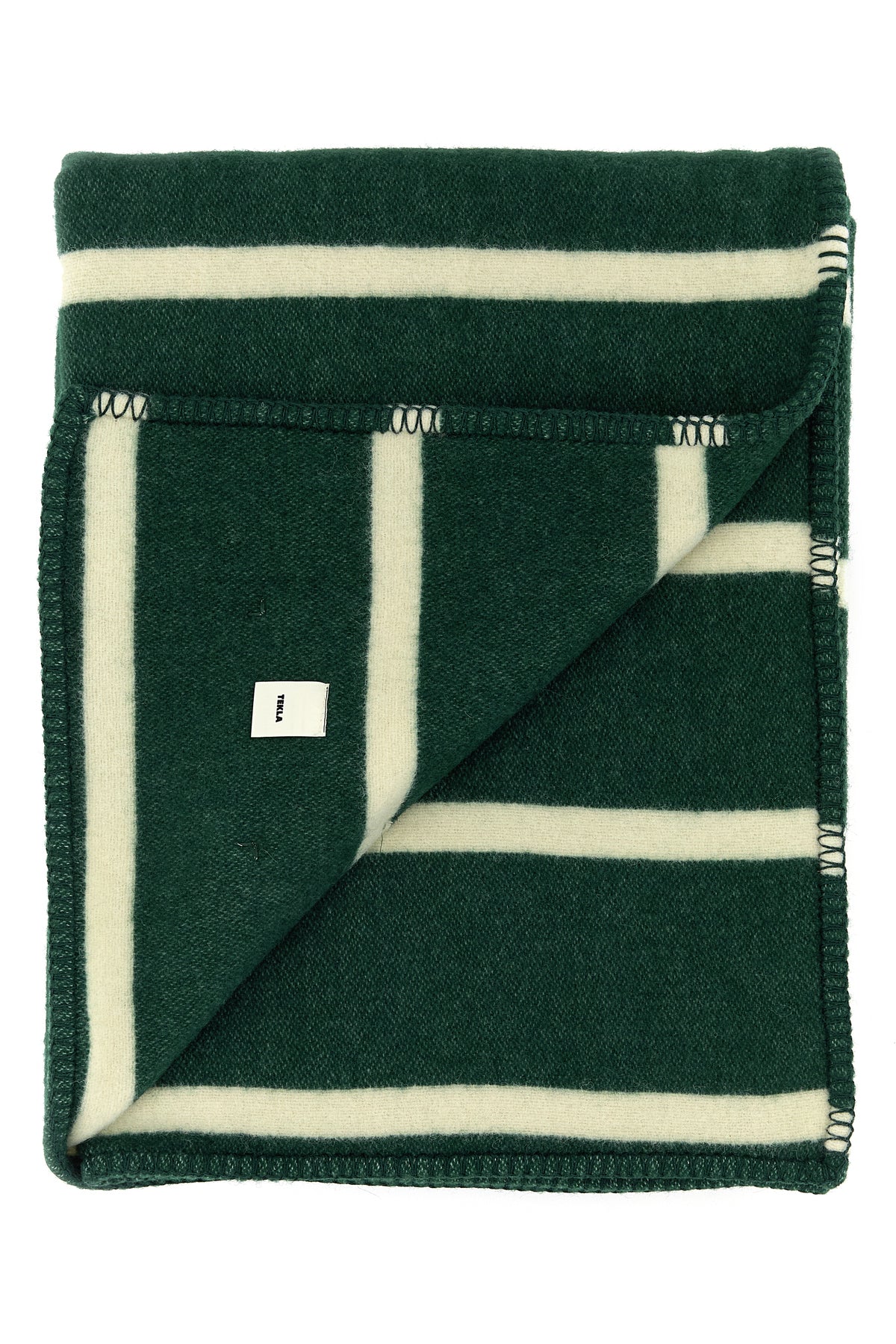 Blanket realized in pure wool characterized by La striped embroidery on the entire surface.
