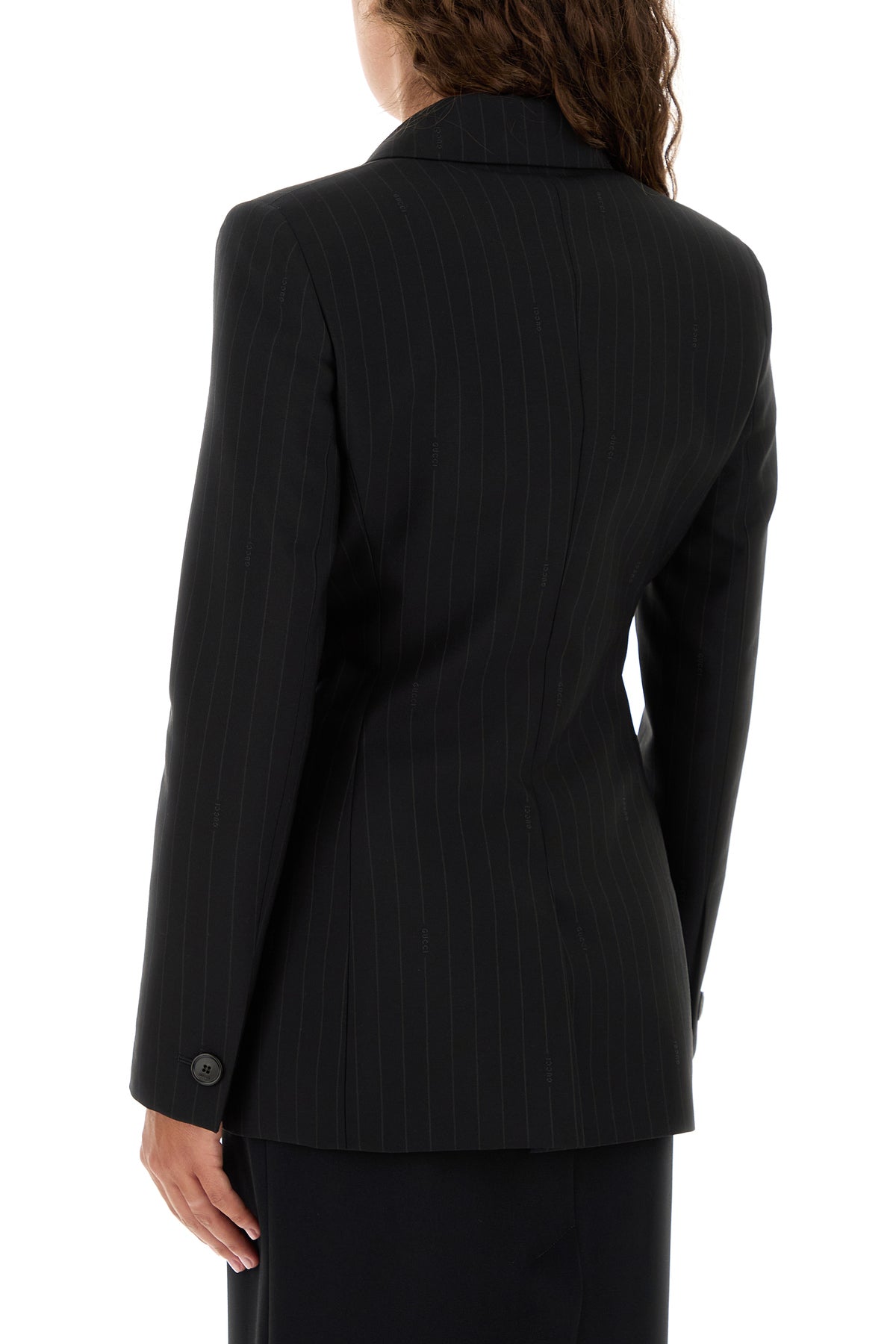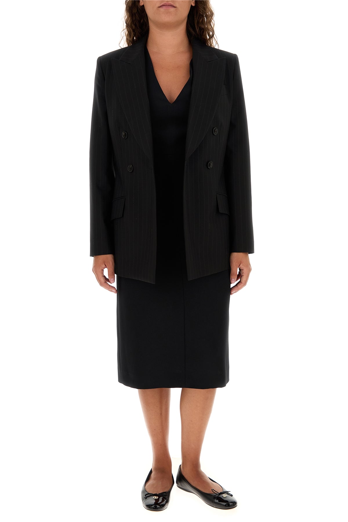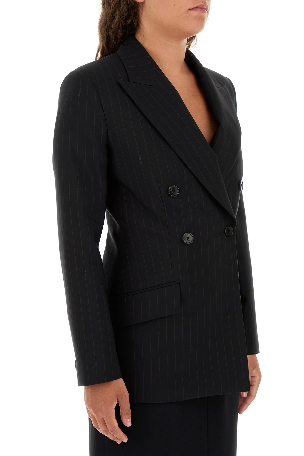 Blazer realized in pure wool characterized by pinstriped motif embroidery on the entire surface.
