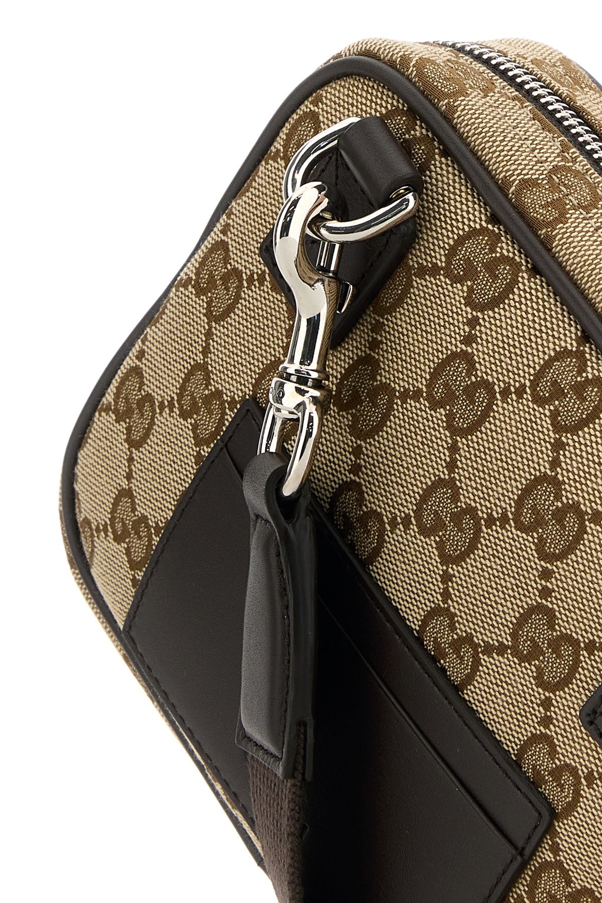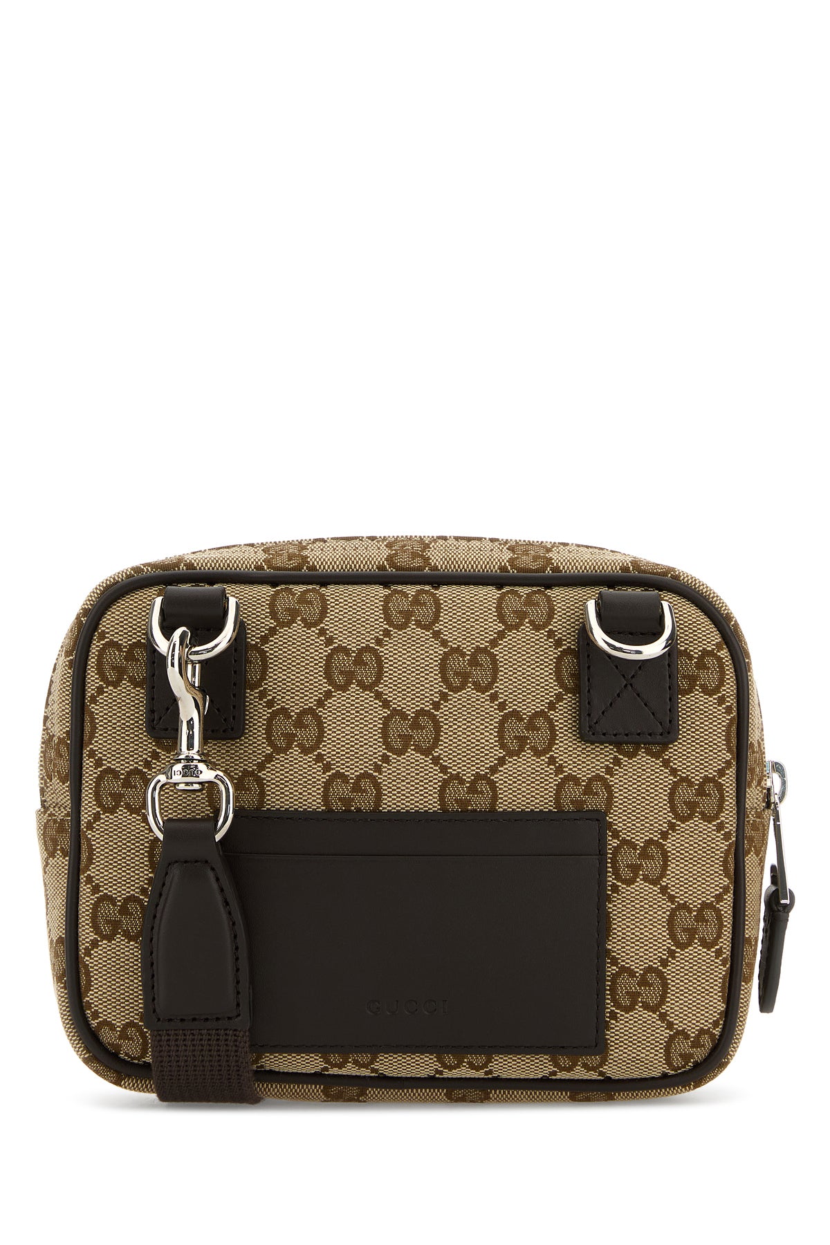 Crossbody bag realized in GG fabric characterized by embossed logo at the back.