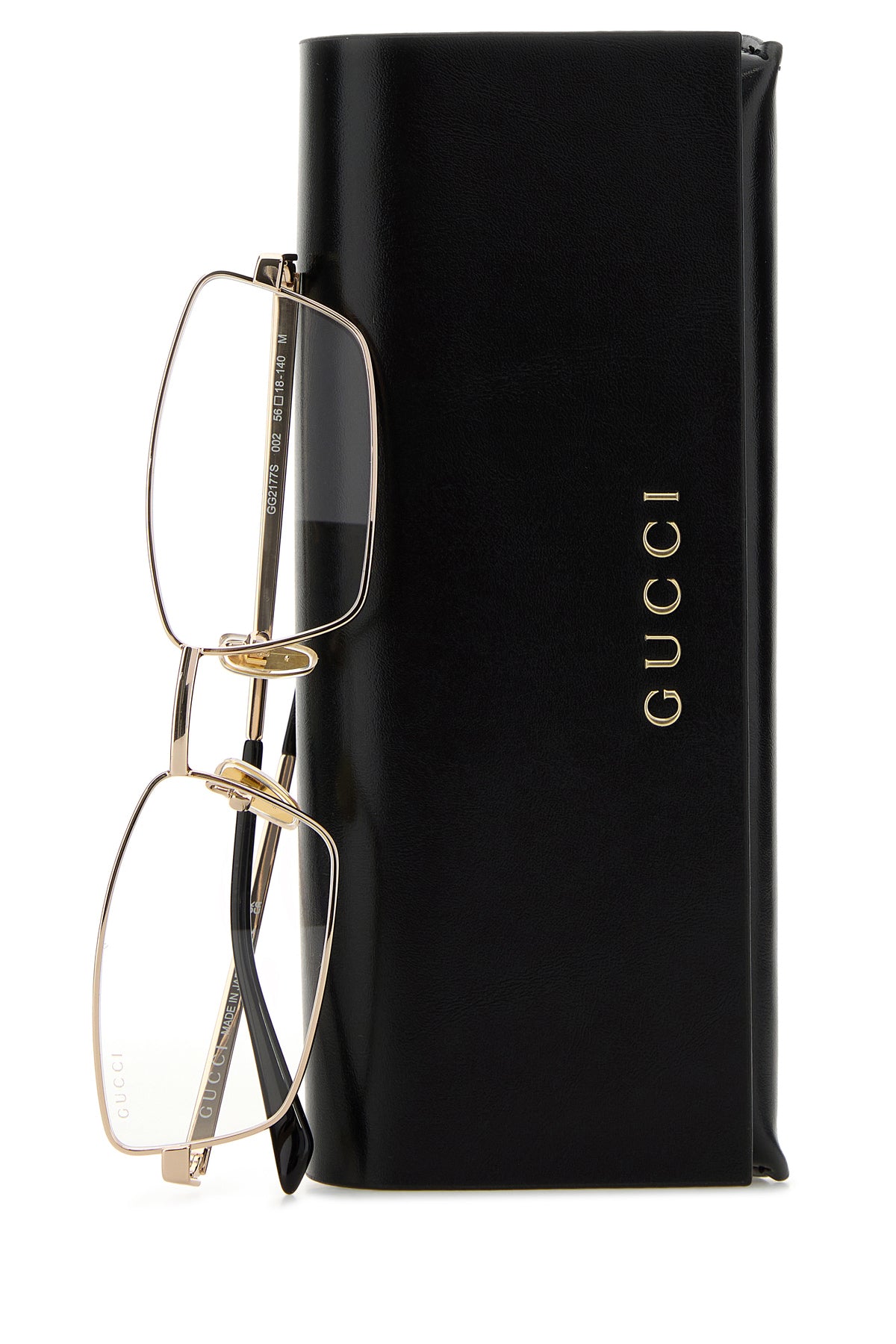 Glasses realized in metal characterized by Gucci motif on the lens and on the arms.
