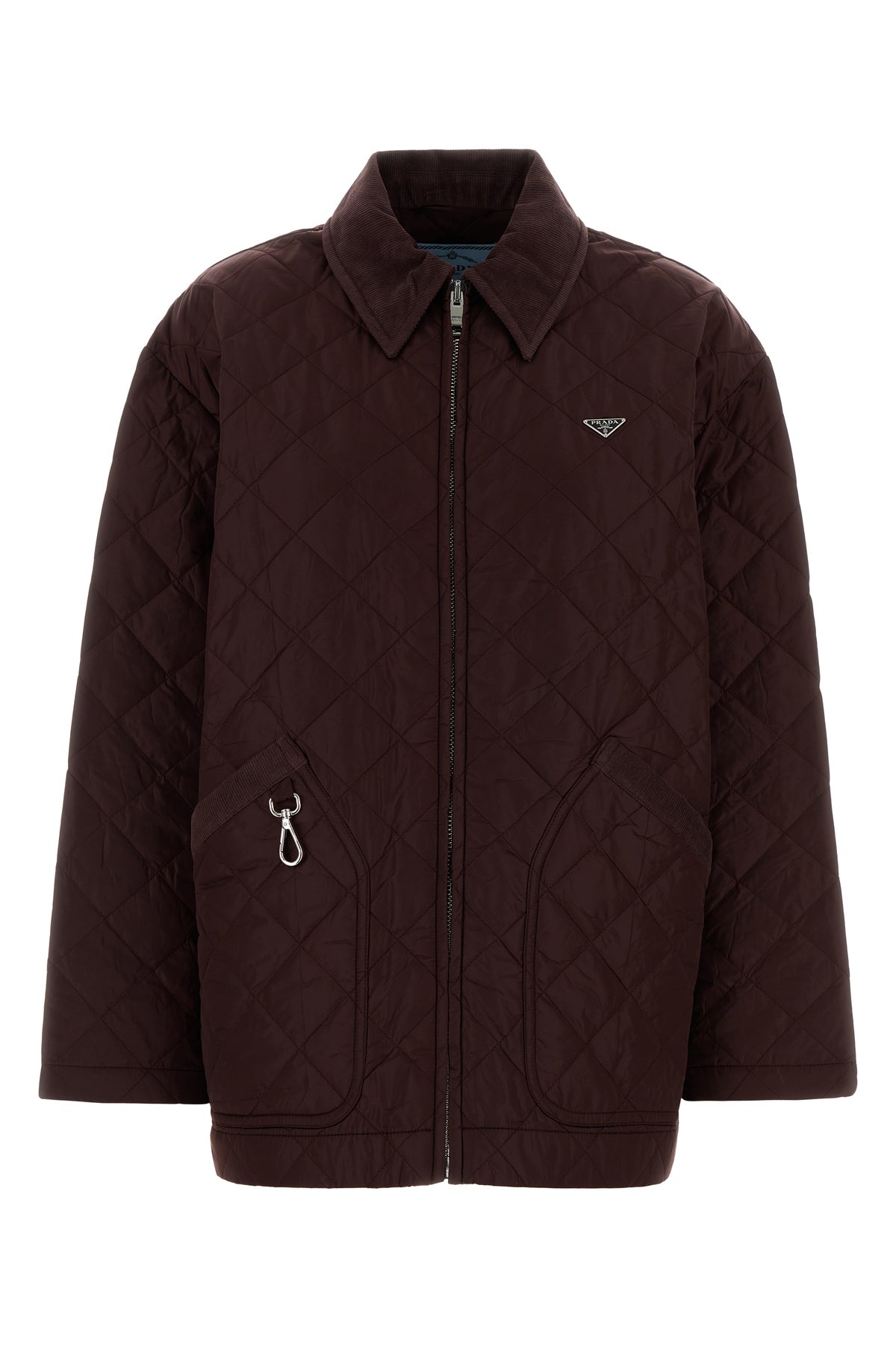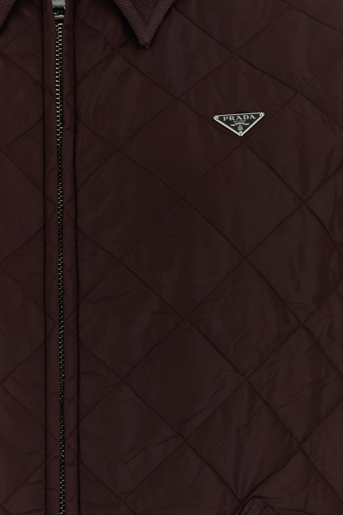 Jacket realized in quilted Re-Nylon enriched by metal iconic logoed triangle on the chest.