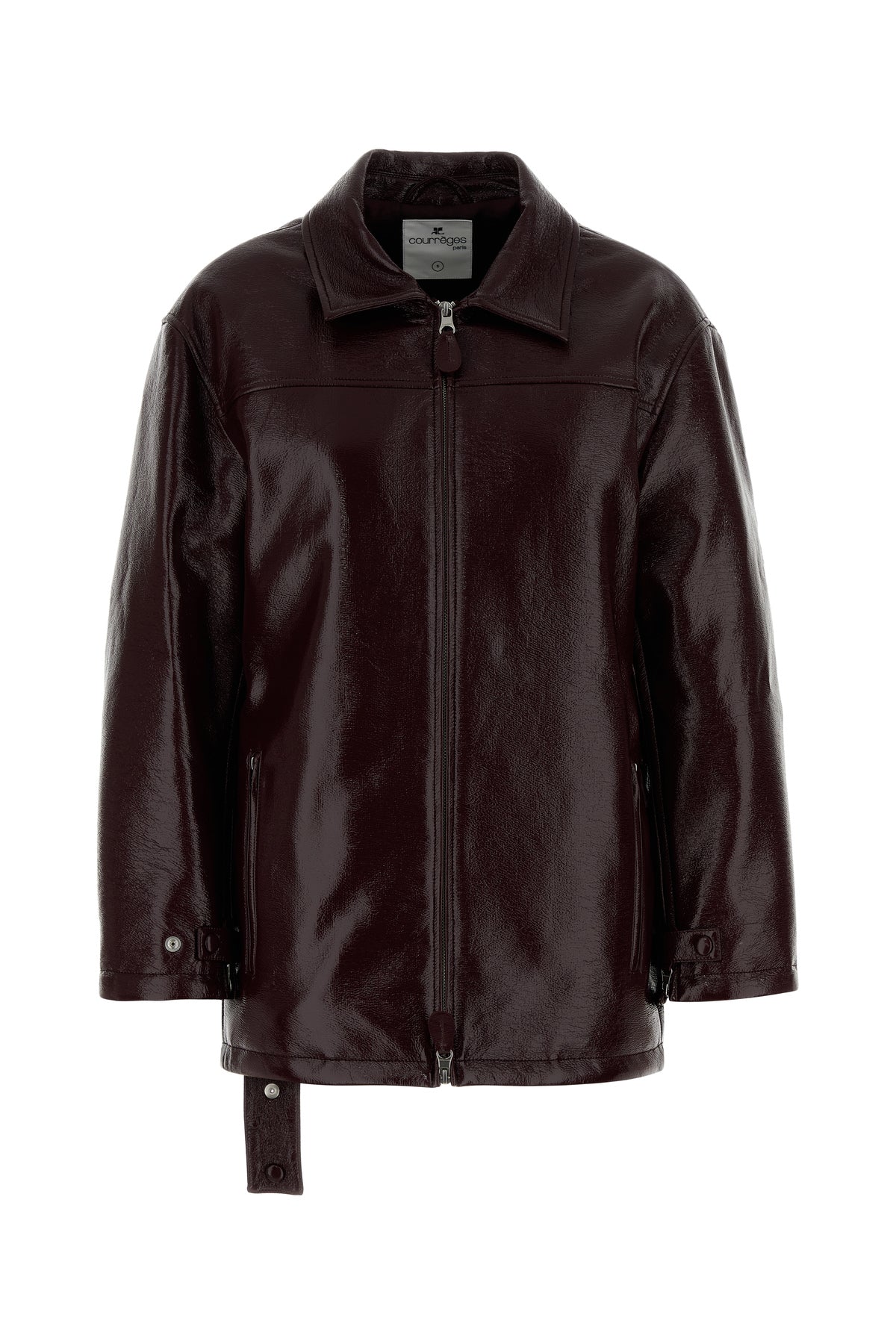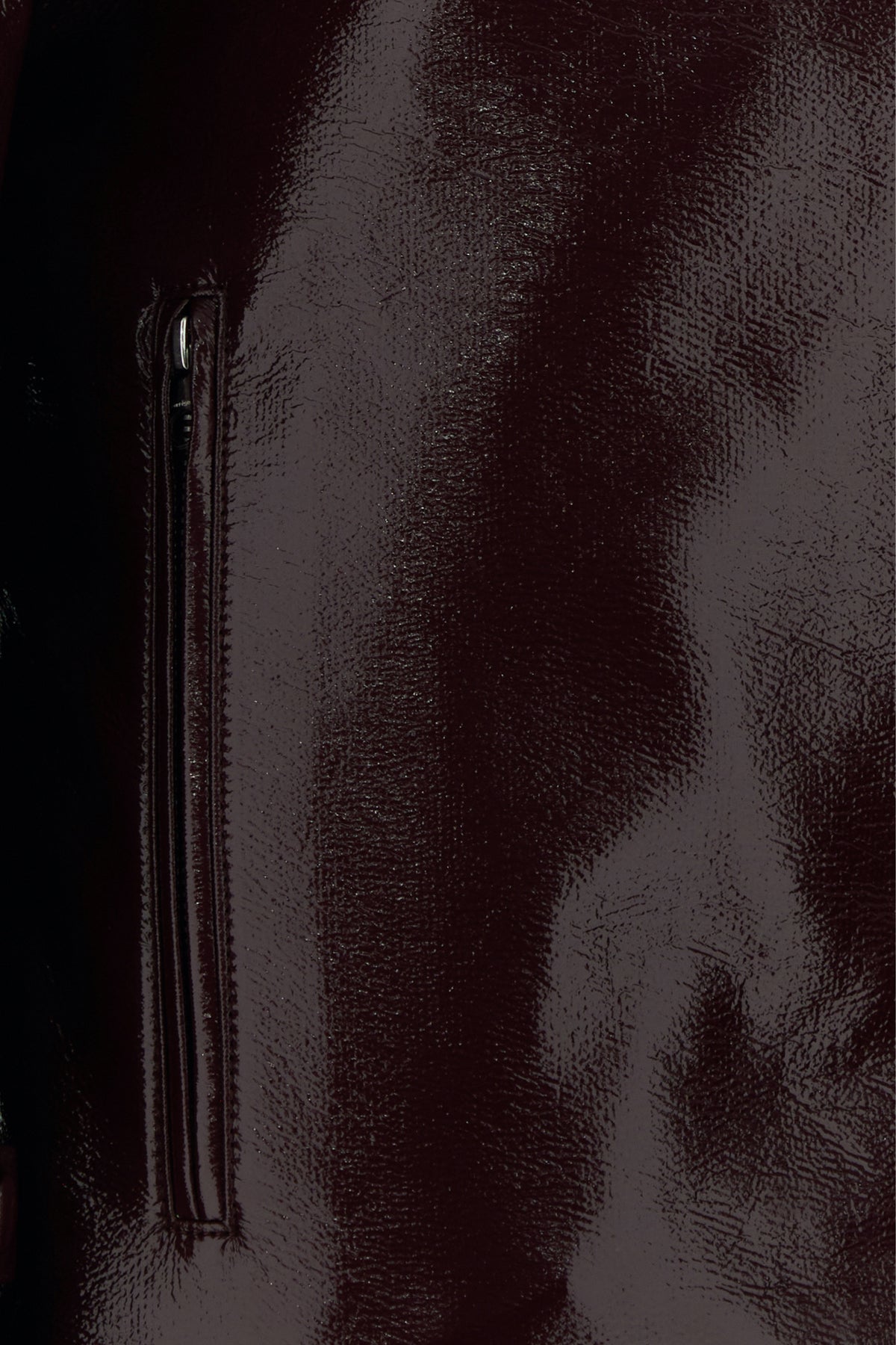 Padded jacket realized in stretch vinyl enriched by strap at the back.