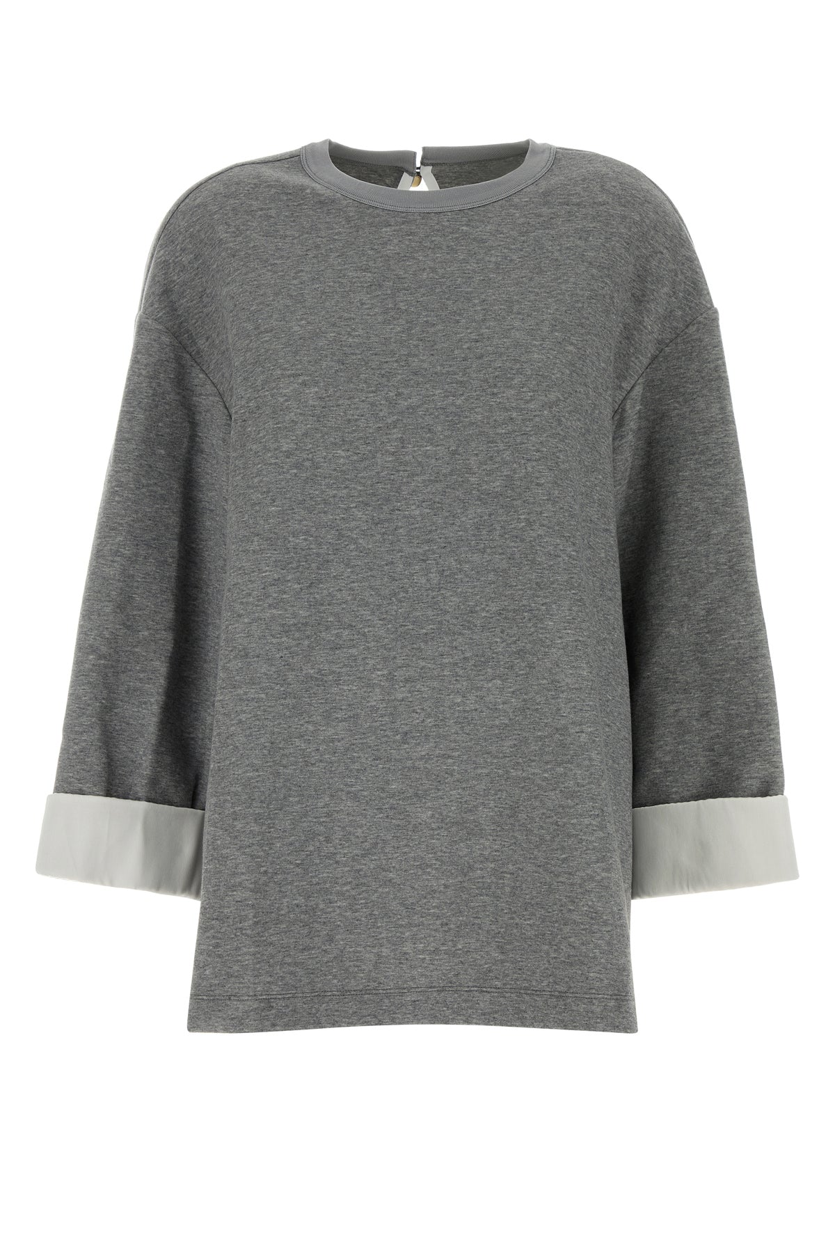 Oversize sweatshirt realized in nylon blend characterized by contrasting satin cuffs.