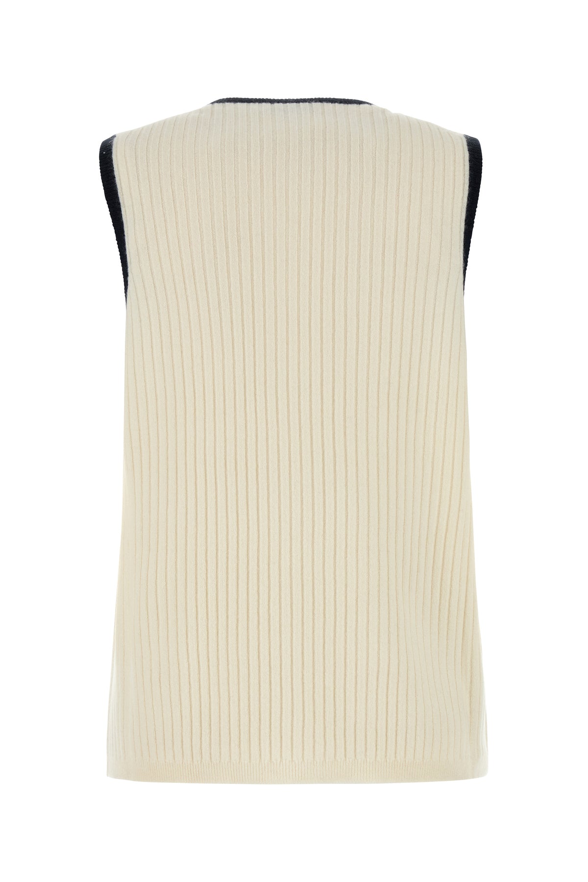 Vest realized in ribbed cashmere characterized by contrasting embroidered logo on the chest.