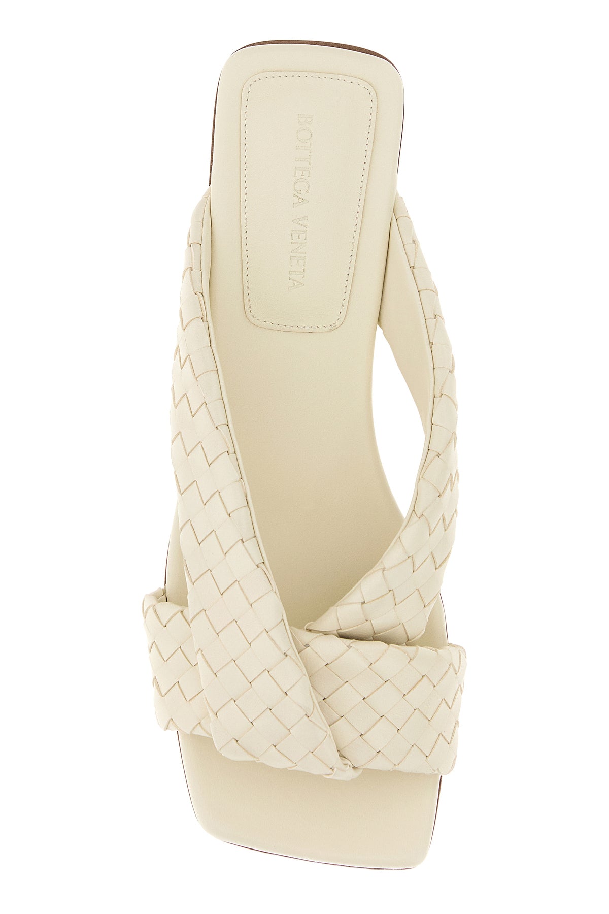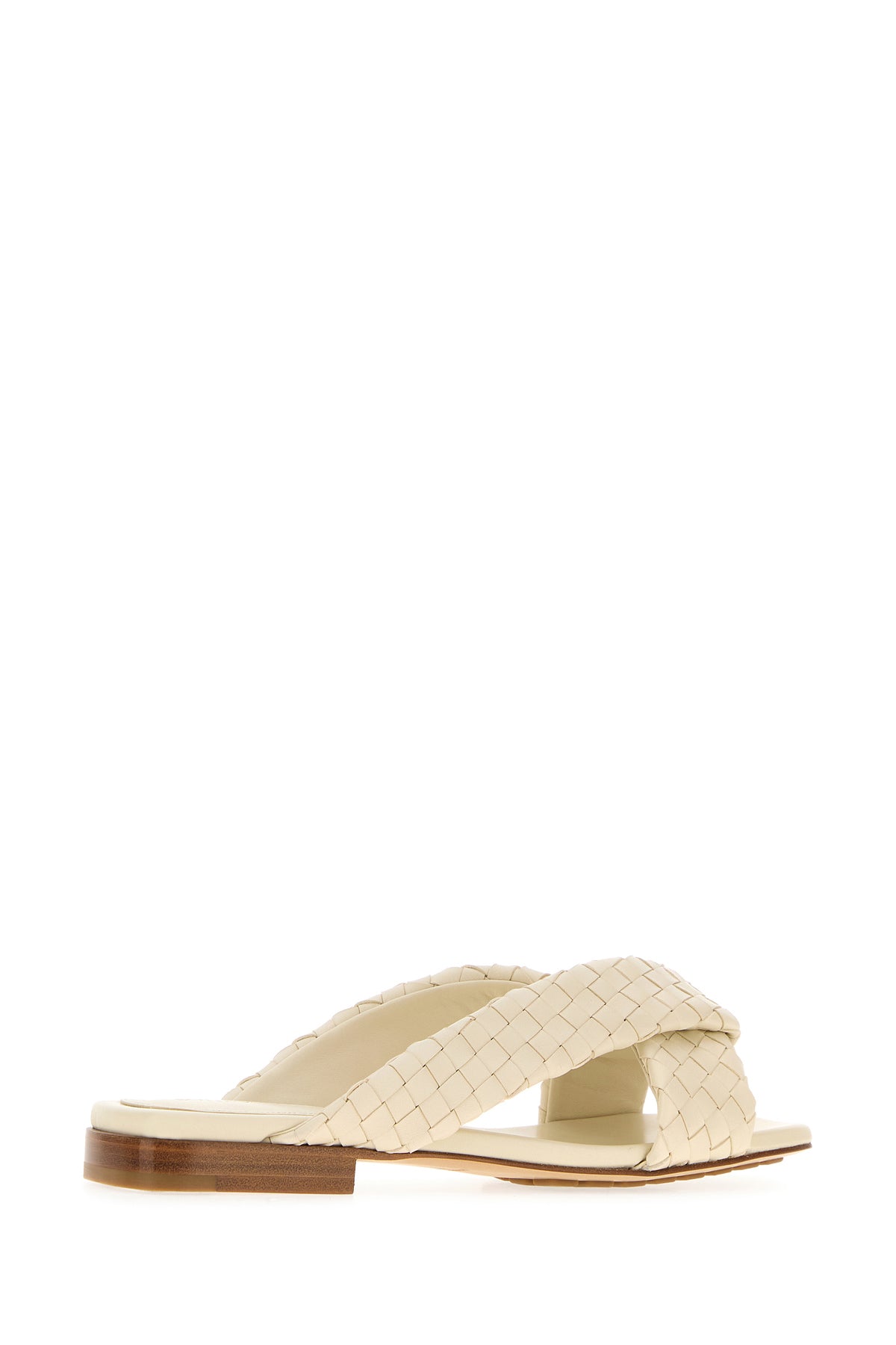 Slippers realized in nappa leather characterized by iconic Intrecciato motif on the entire surface.