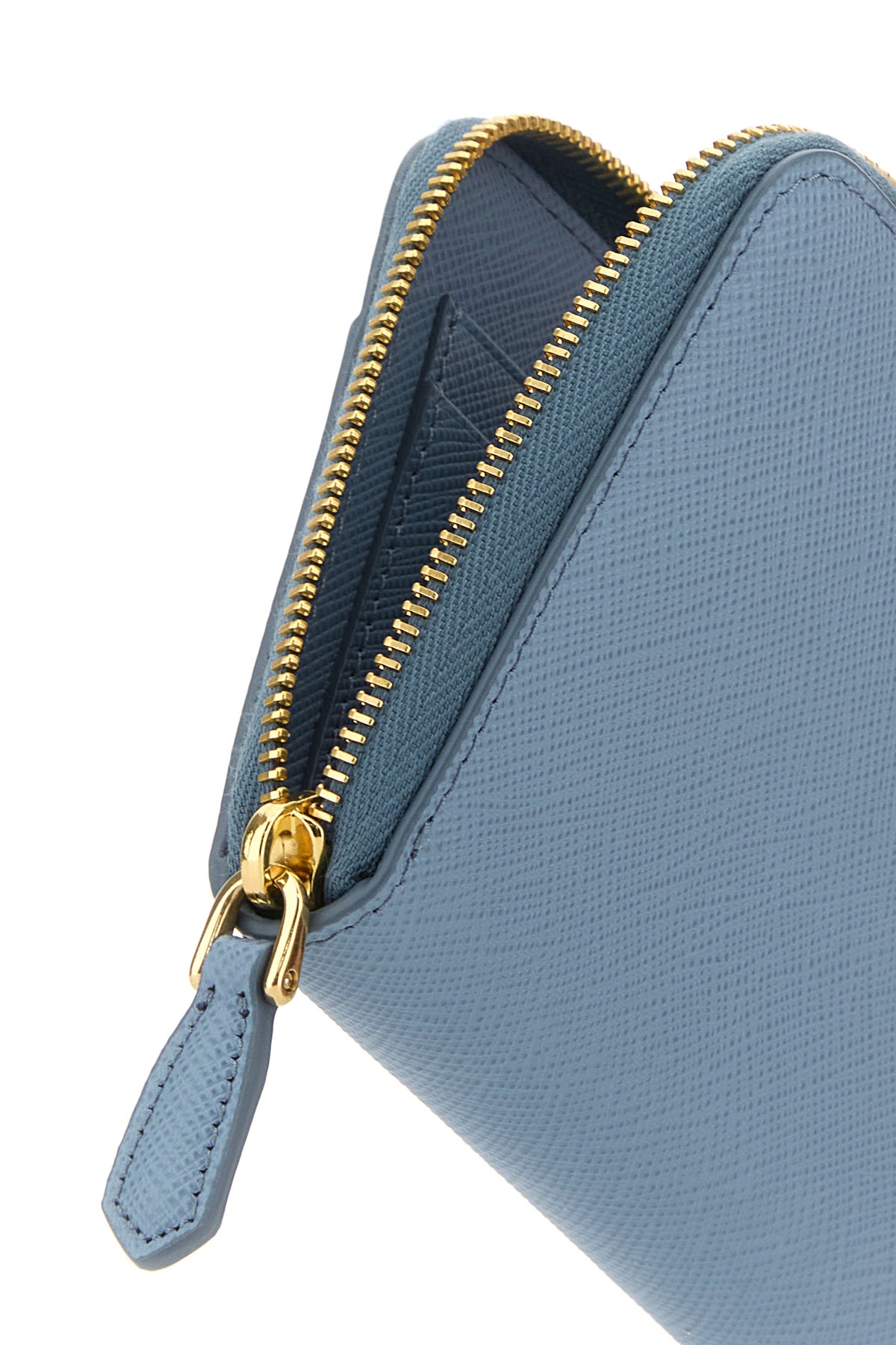 Wallet realized in Saffiano leather enriched by metal iconic logoed triangle at the front.