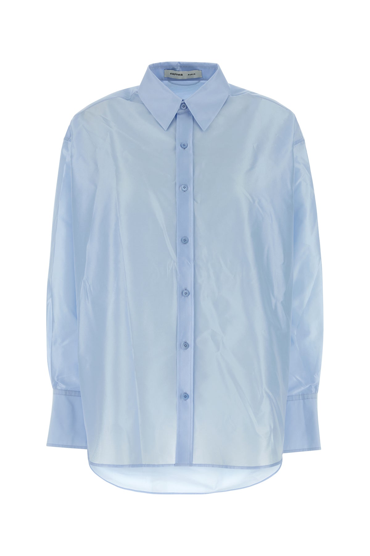 Oversize shirt realized in organza characterized by short-pointed collar.