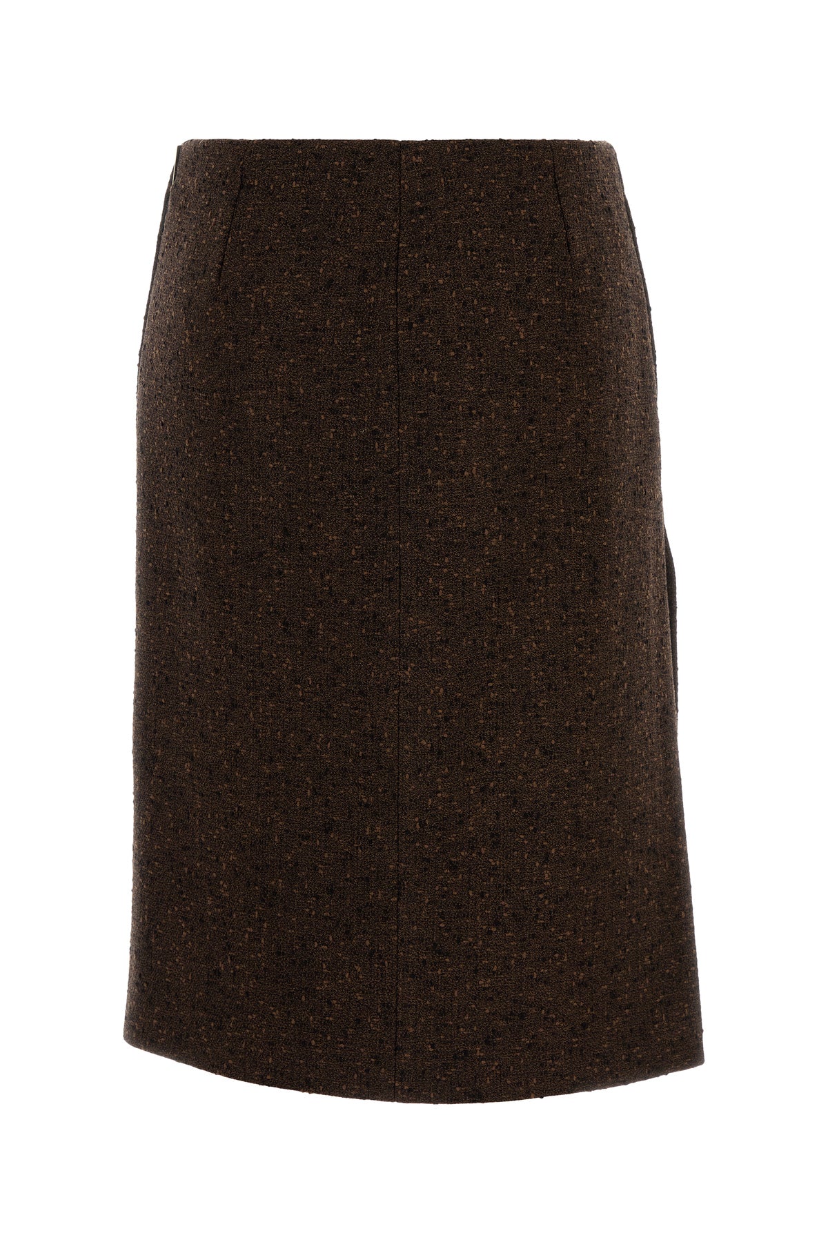 Midi-length skirt realized in stretch wool blend enriched by metal Gucci plate on the side.