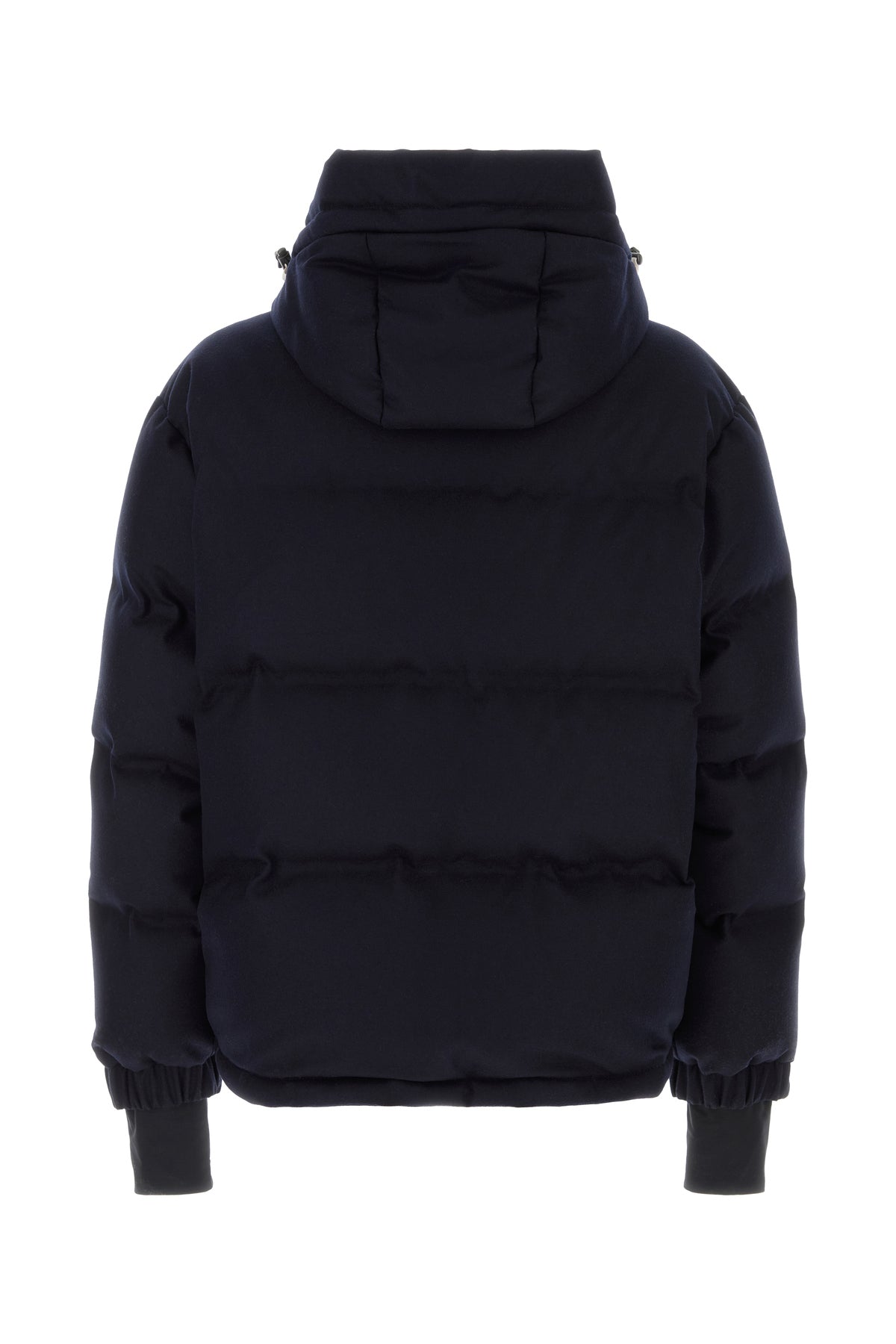 Down jacket realized in pure virgin wool enriched by logoed patch on the sleeve.