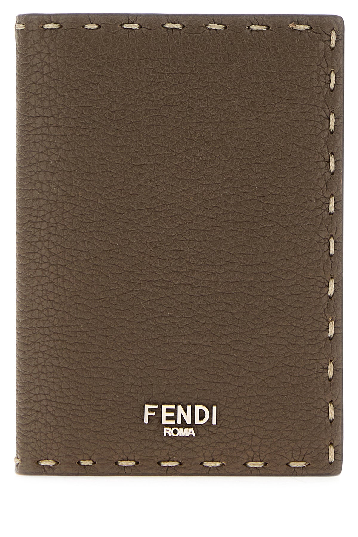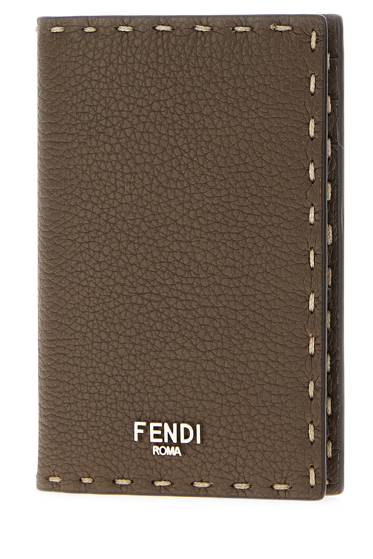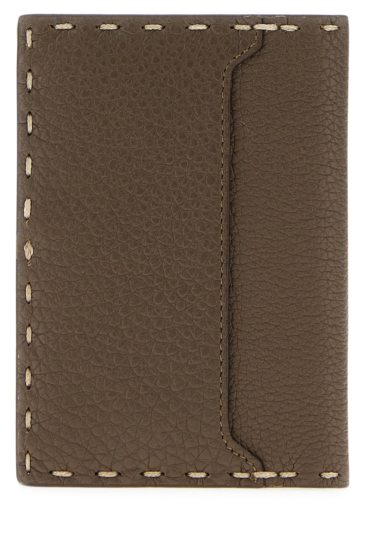 Card holder realized in pebble leather enriched by metal lettering logo at the front.