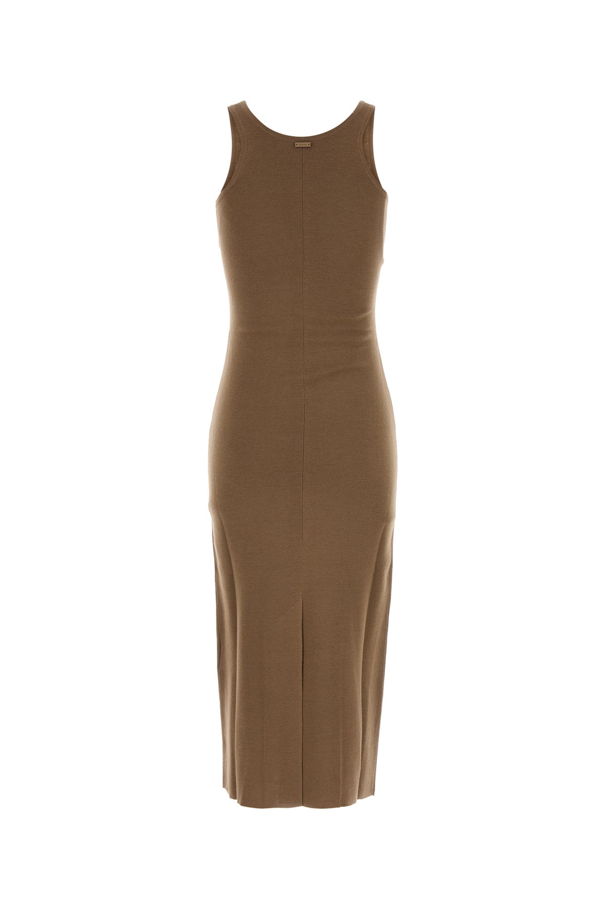 Fitted dress realized in pure virgin wool enriched by logoed metal plate at the back.