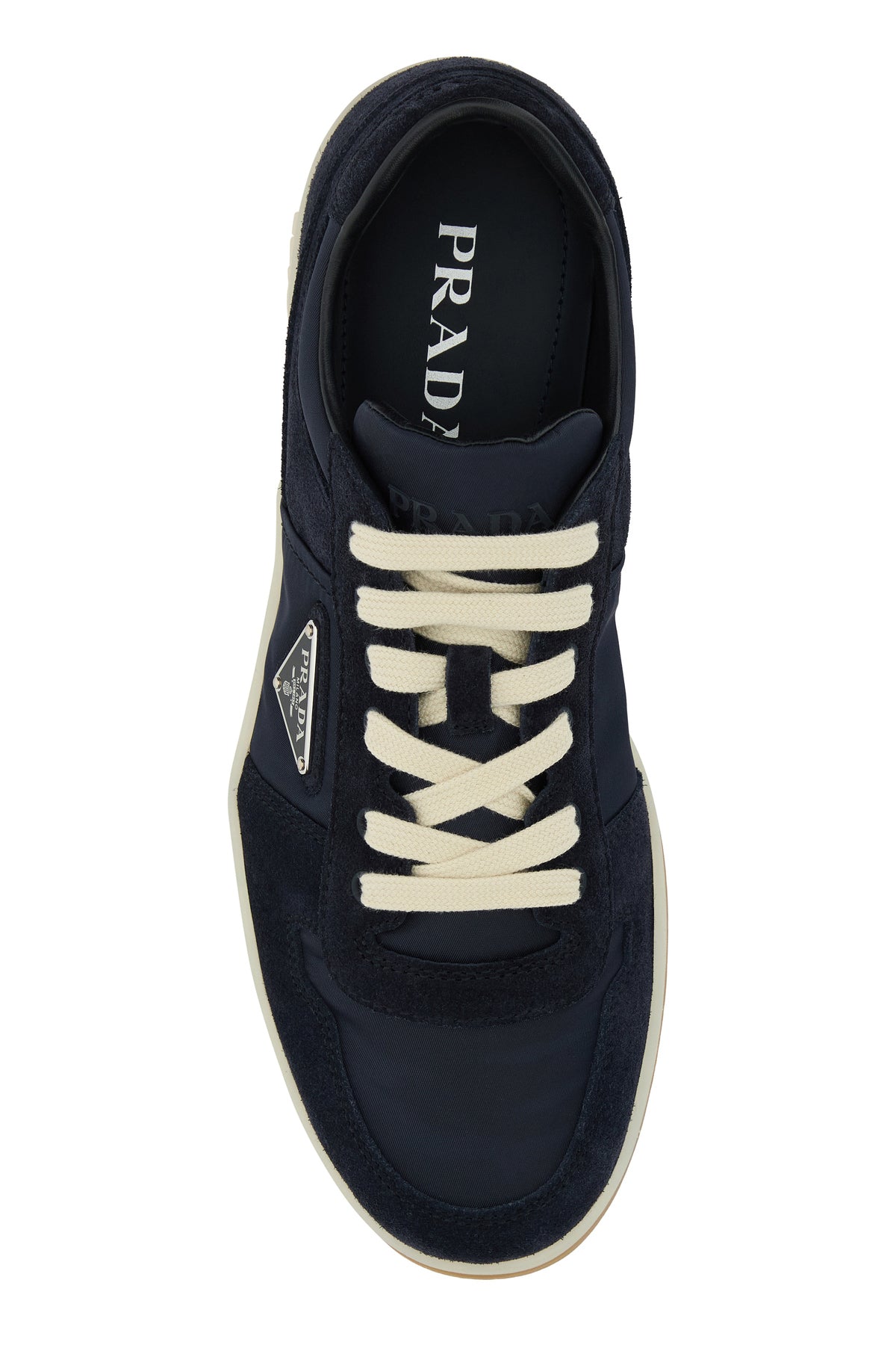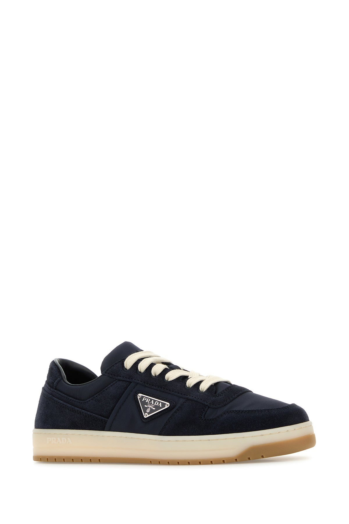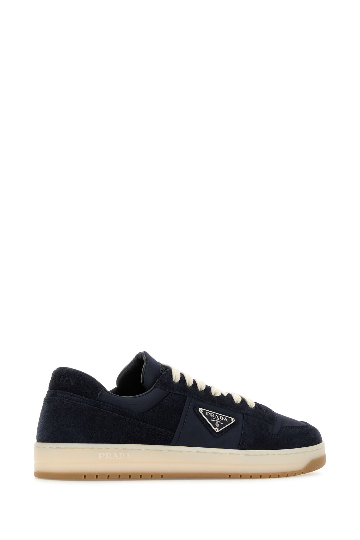 Sneakers realized in canvas and suede characterized by embossed logo at the back and logo in relief on the sole enriched by iconic logoed metal triangle on the side.
