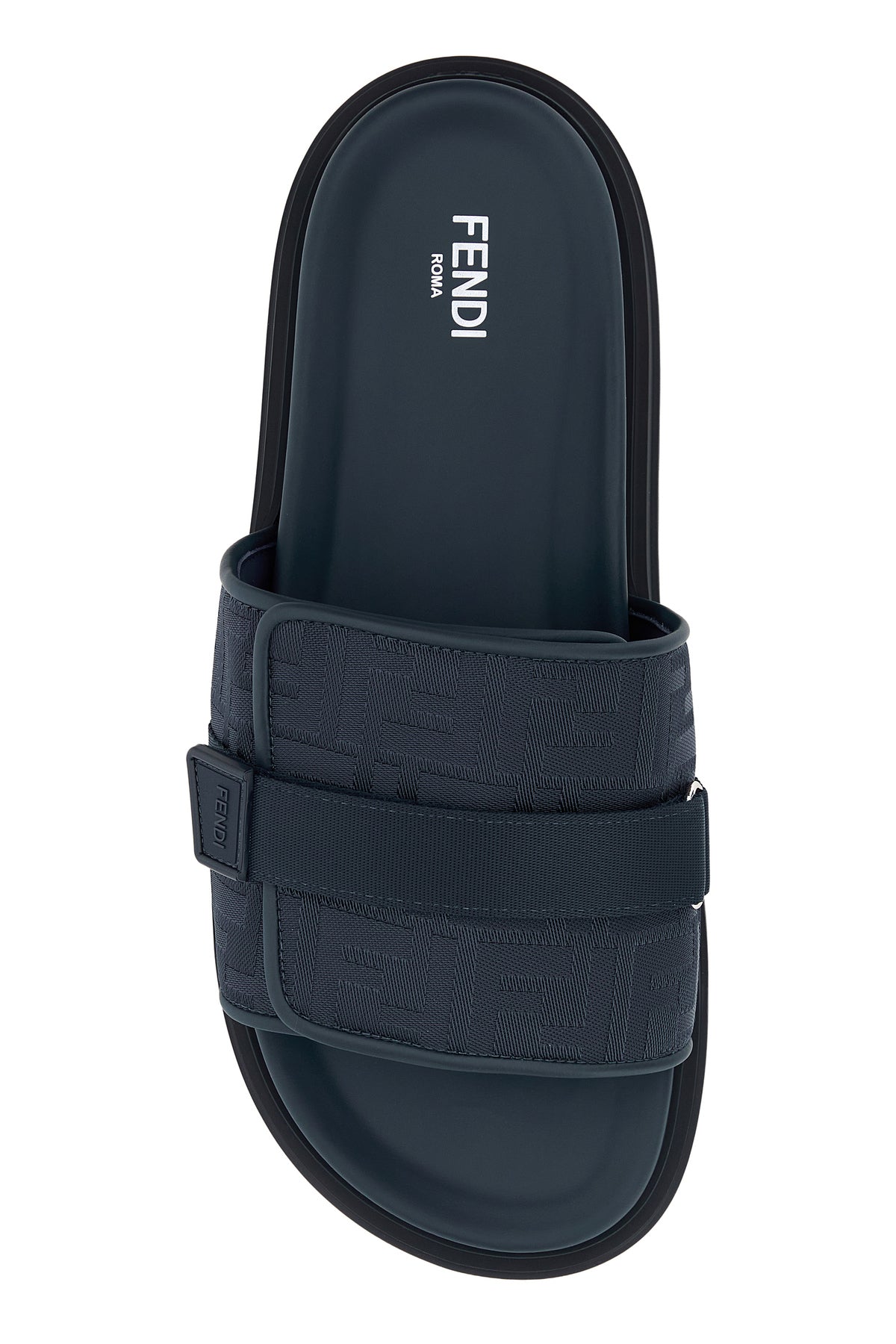 Slippers realized in fabric characterized by tonal FF embroidery on the instep and logo in relief at the back.
