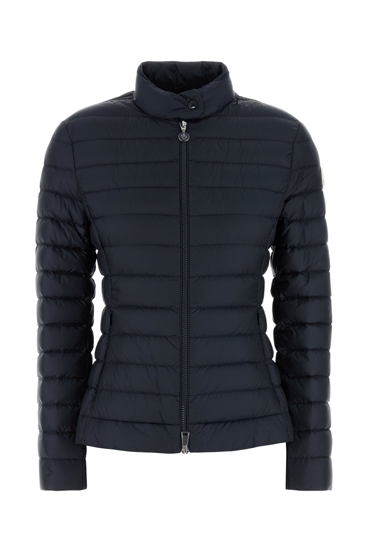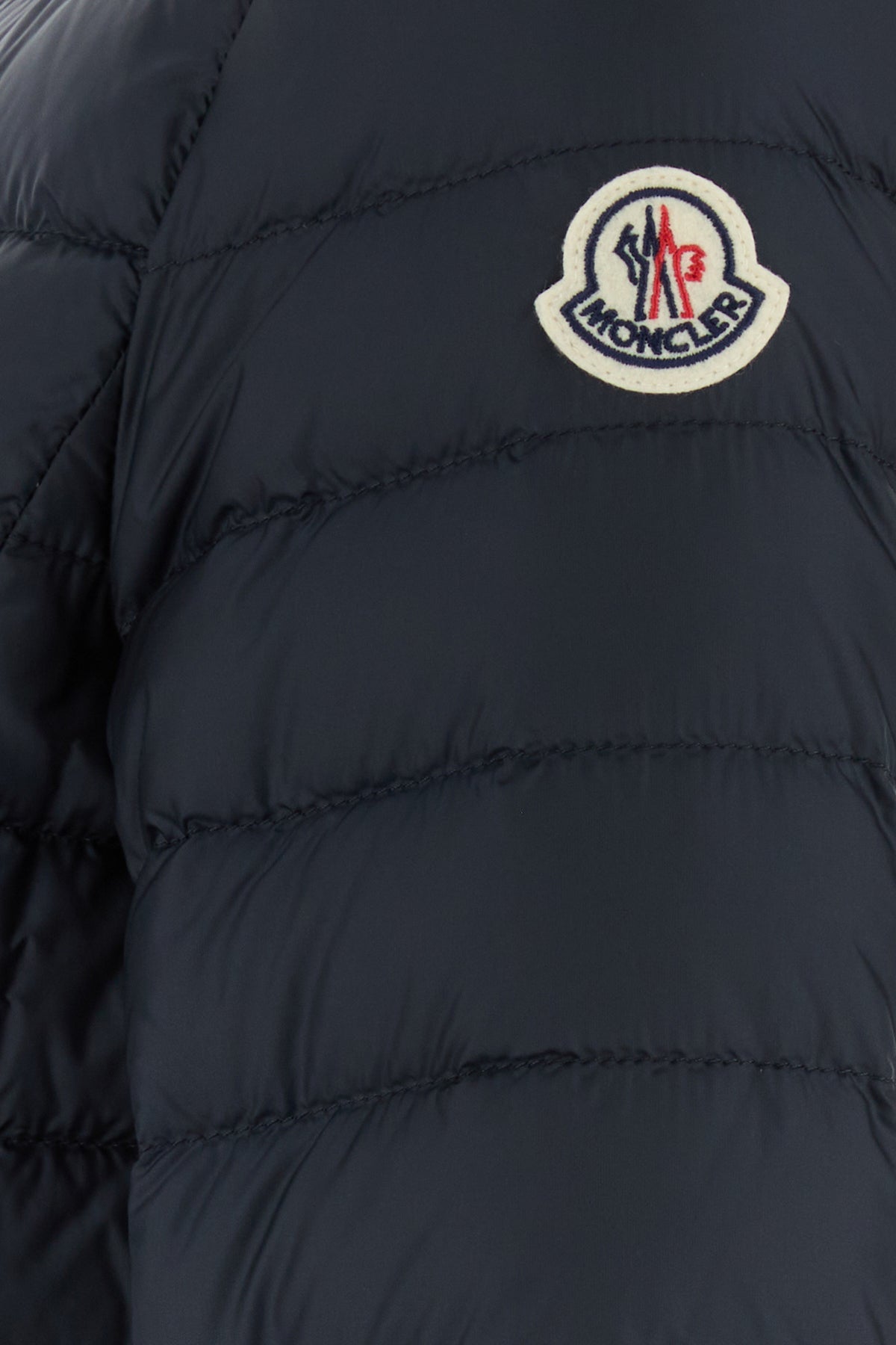 Down jacket realized in quilted nylon enriched by contrasting logoed patch on the sleeve.
