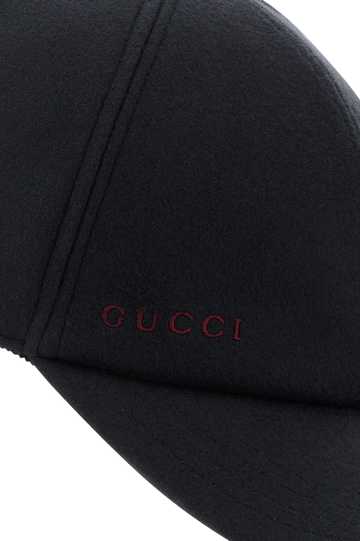 Baseball cap realized in pure wool characterized by Gucci embroidery at the front.