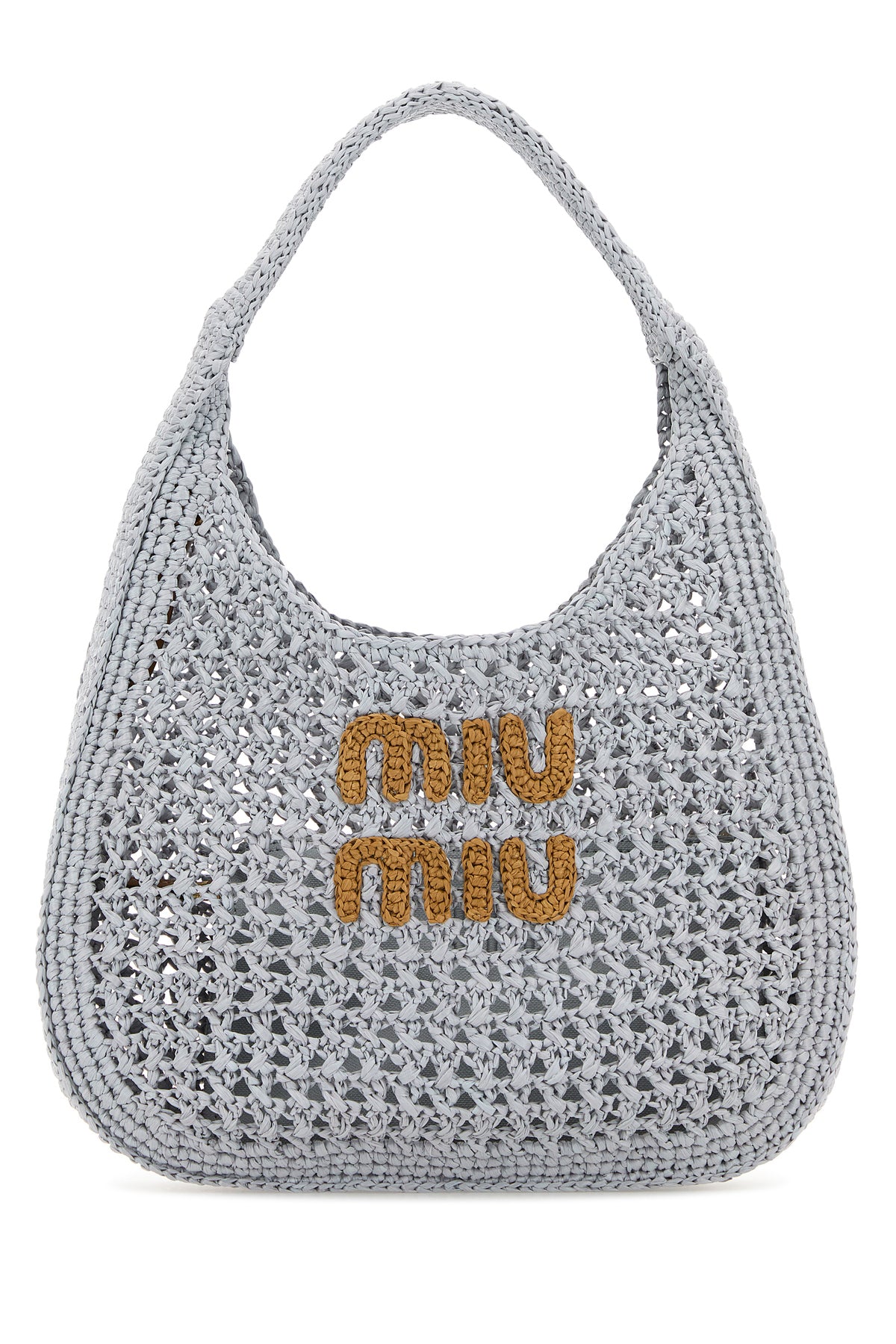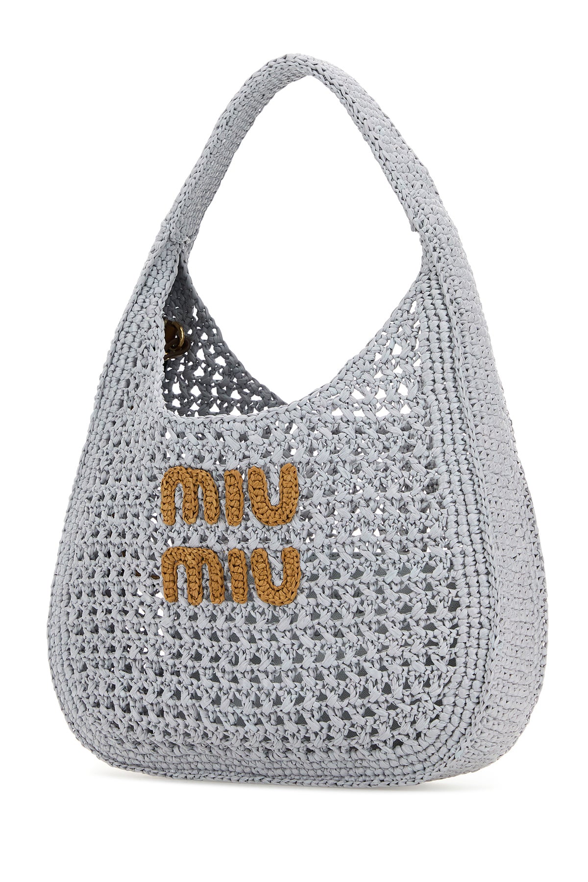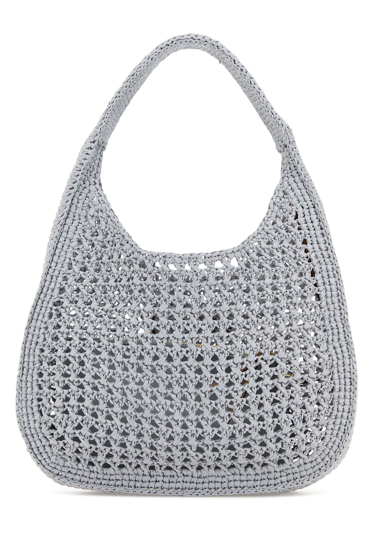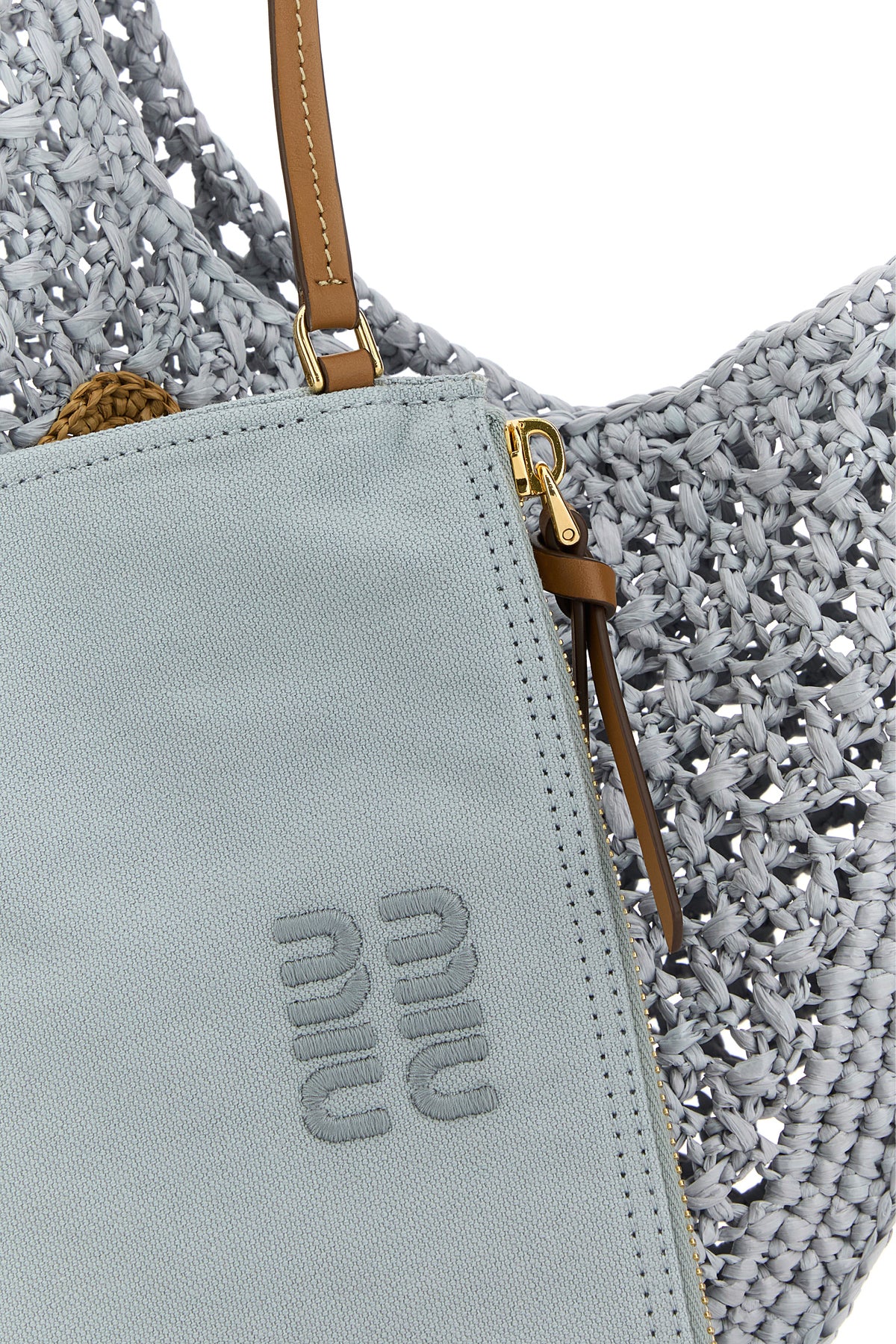 Shopping bag realized in raffia characterized by contrasting embroidered logo at the front.