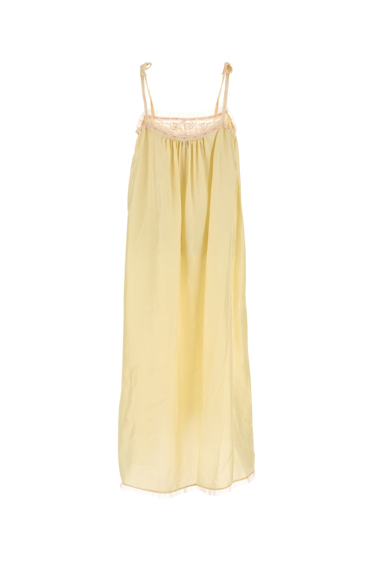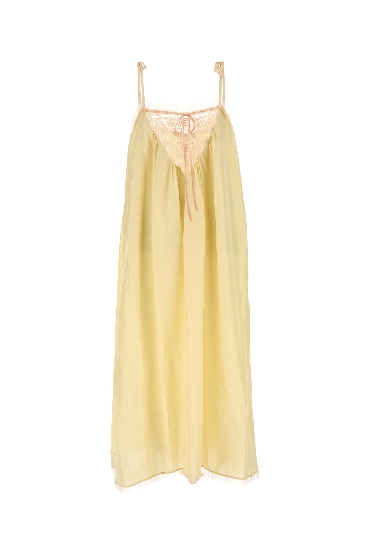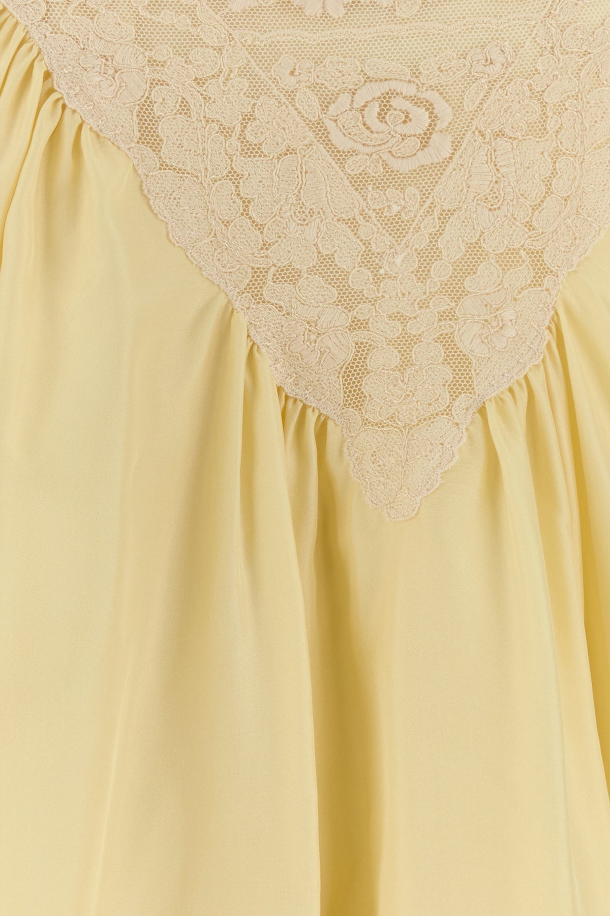 Dress realized in pure silk with contrasting lace insert on the neckline.