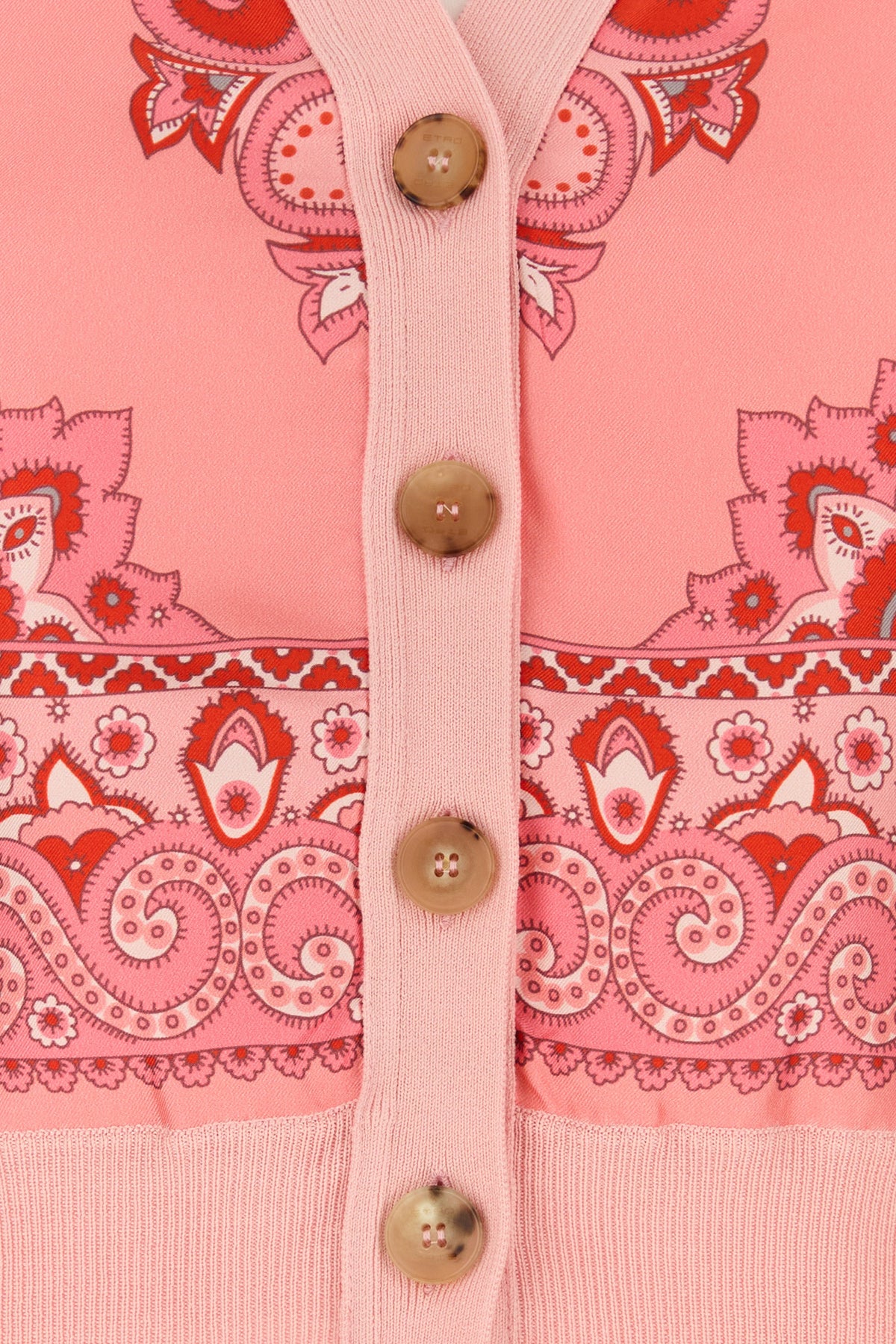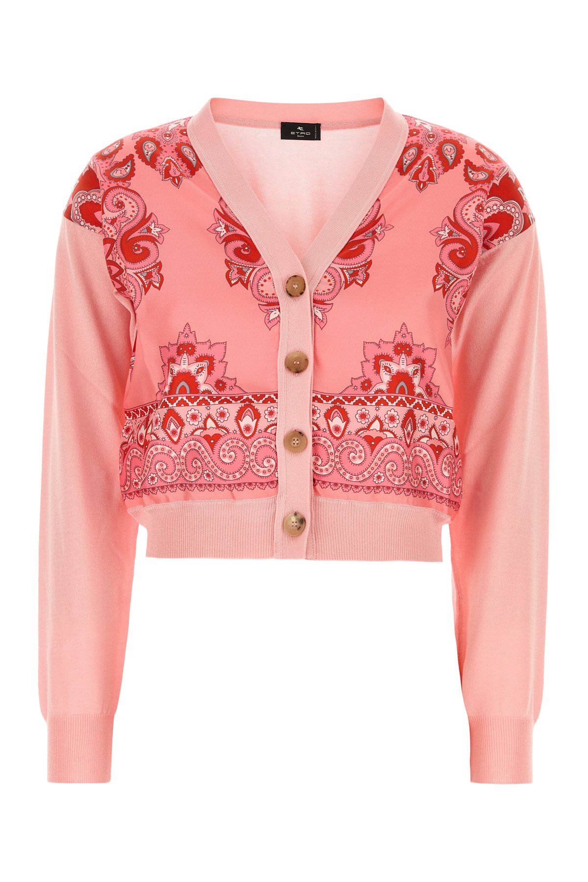 Cardigan realized in cotton blend with silk insert with Paisley print at the front.